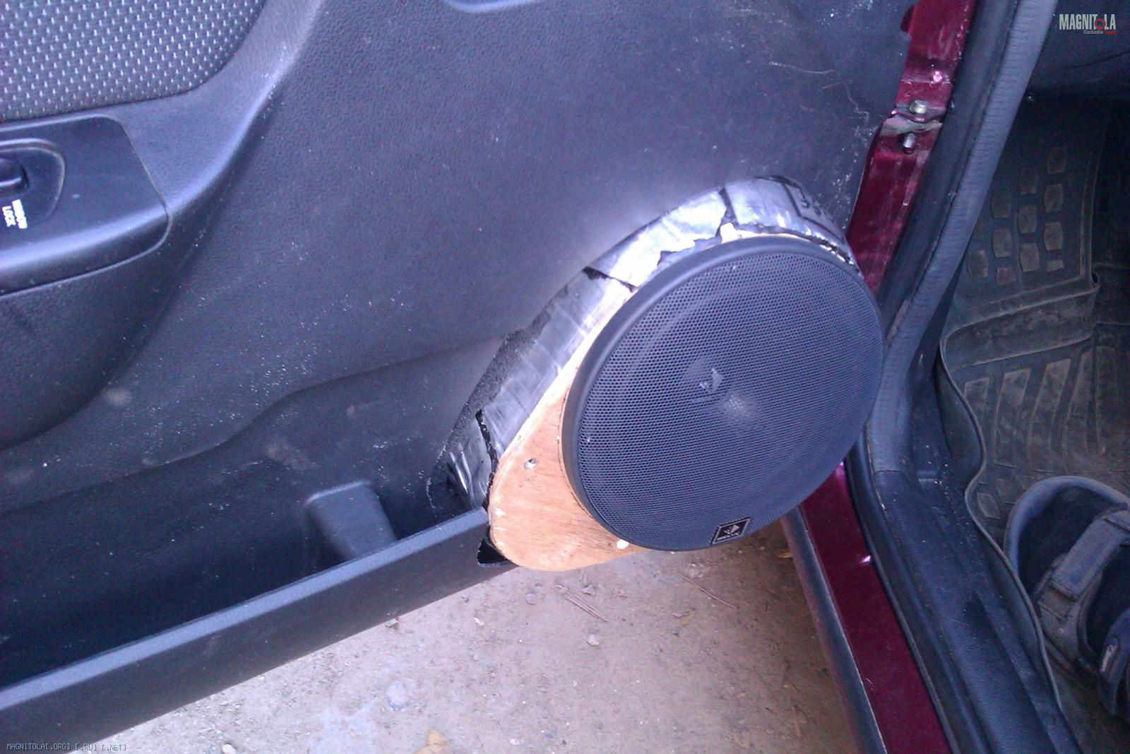 Разбираем карту, это чуть менее чем элементарно,кроем целиком в 2-3 слоя антигравием Body, затем в 3-4 слоя краской для бамперов, например Maston, собираем и ставим на место карту, ножом вырезаем отверстие под динамик и ставим его с заводской сеткой без каких- либо переделок. Несложно и с вполне хорошим результатом.