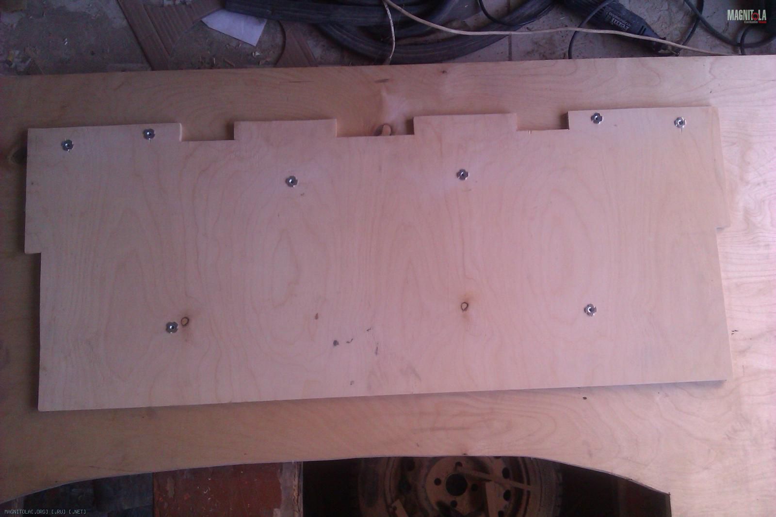 Итак, движемся дальше. Была вырезана из 18мм фанеры перегородка, покрашена лаком и установлена: