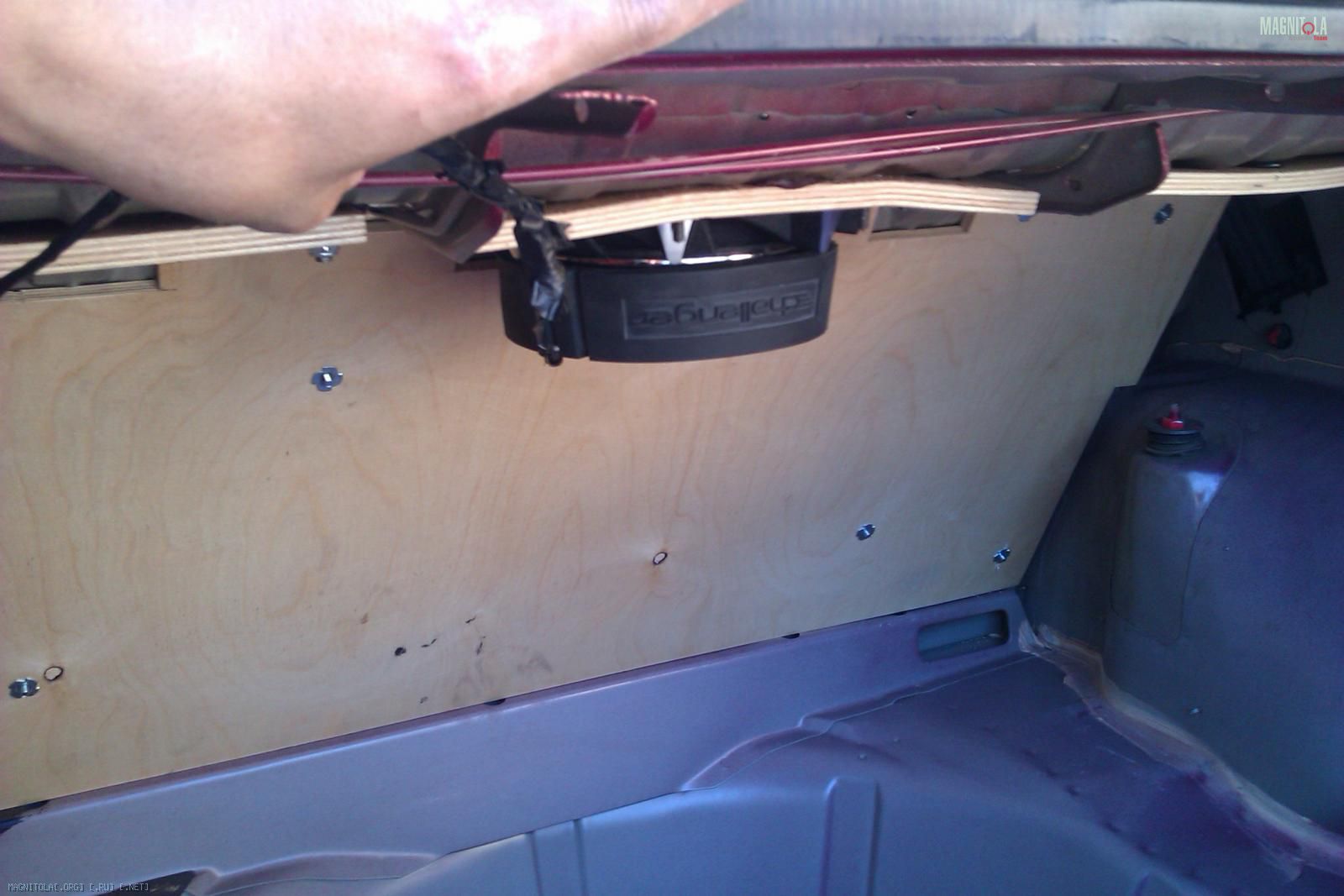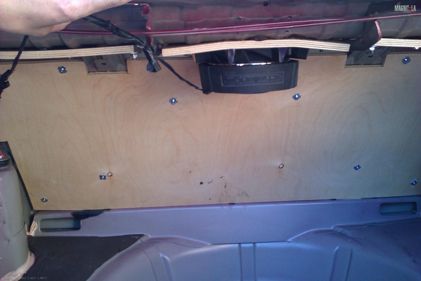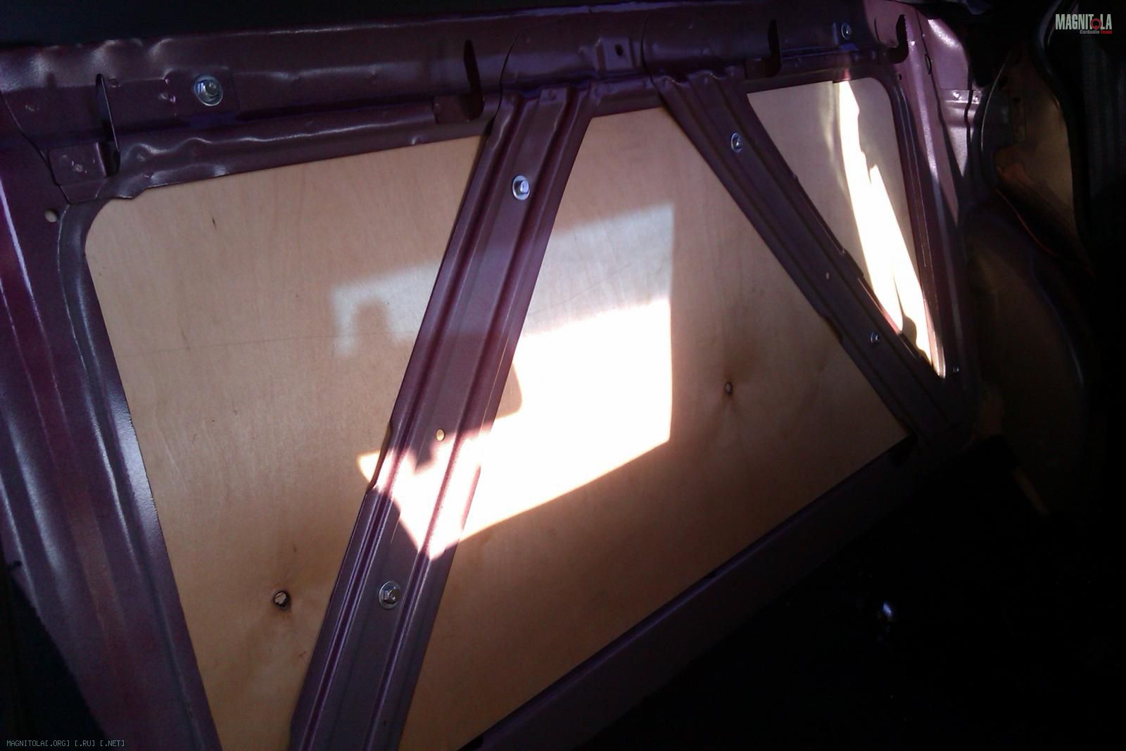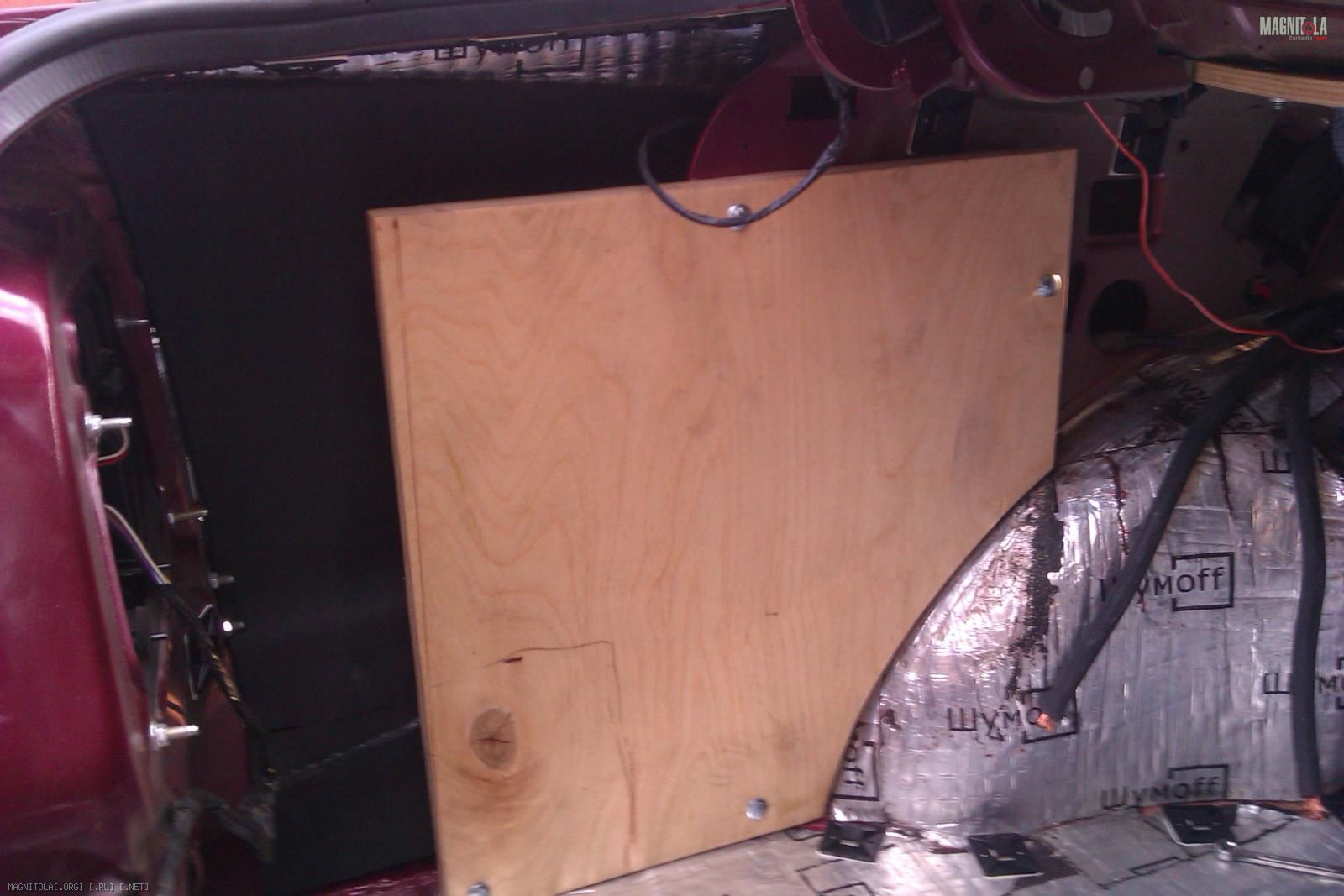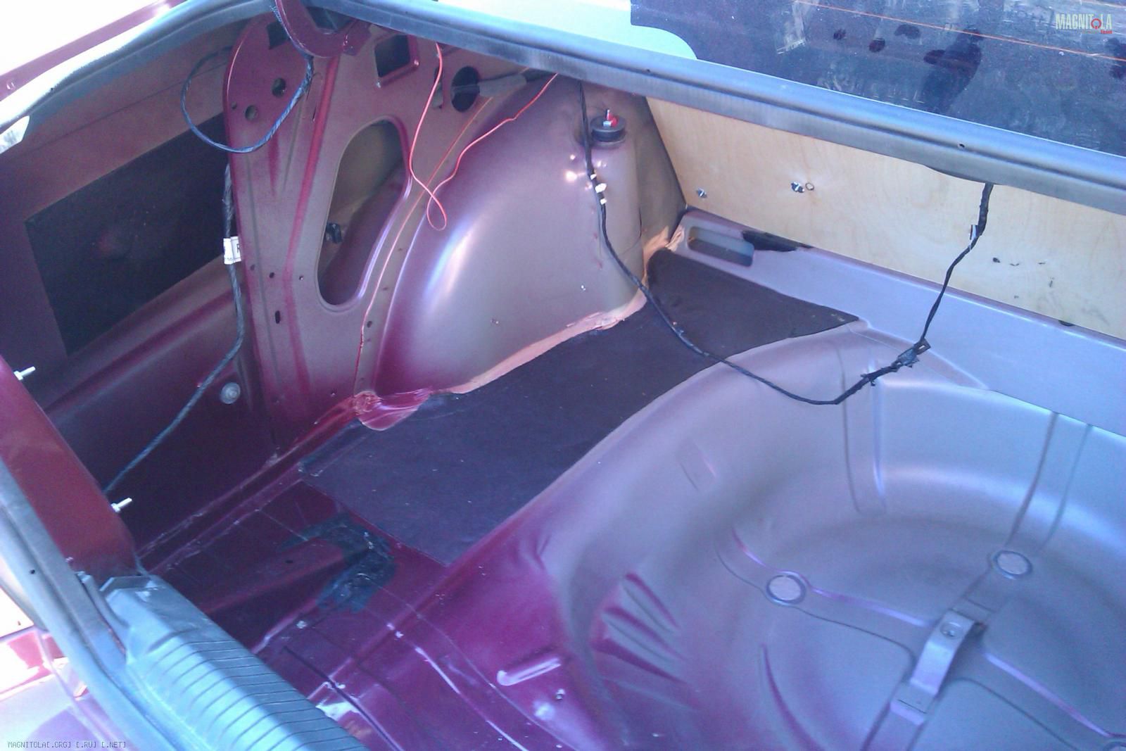 На перегородку был наклеен карпет для эстетики и начата подгонка и сборка обшивки багажника: