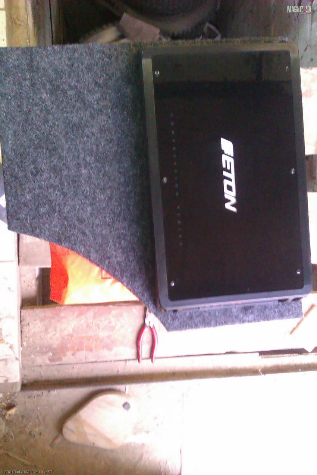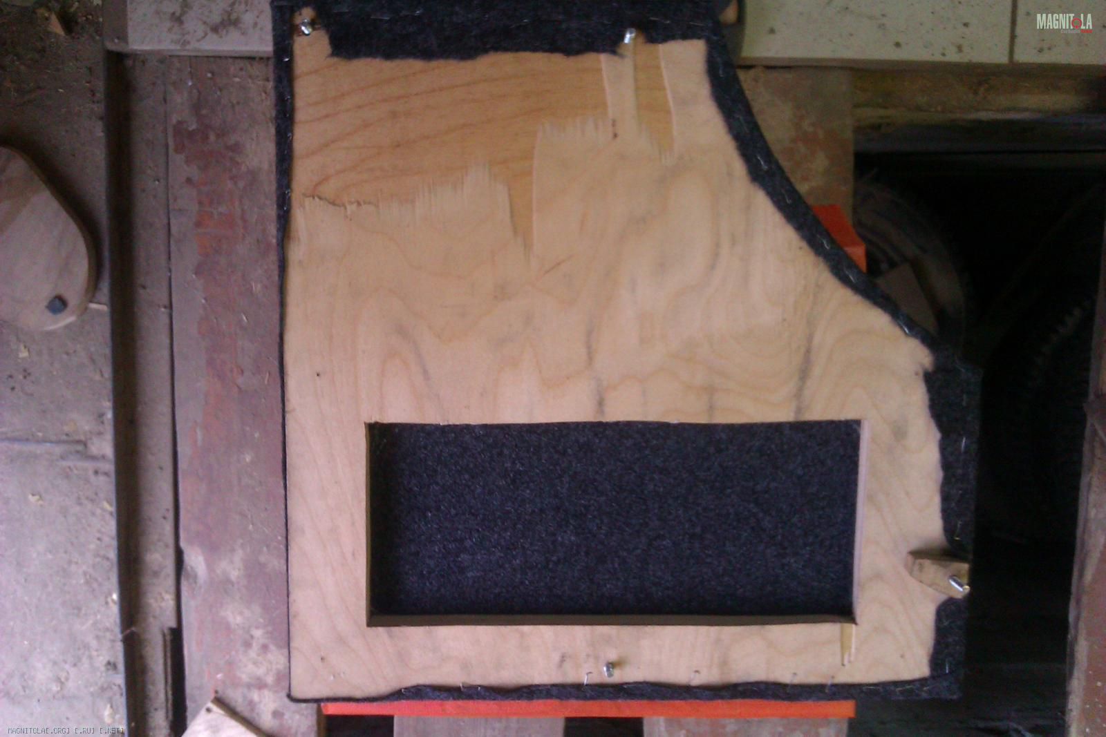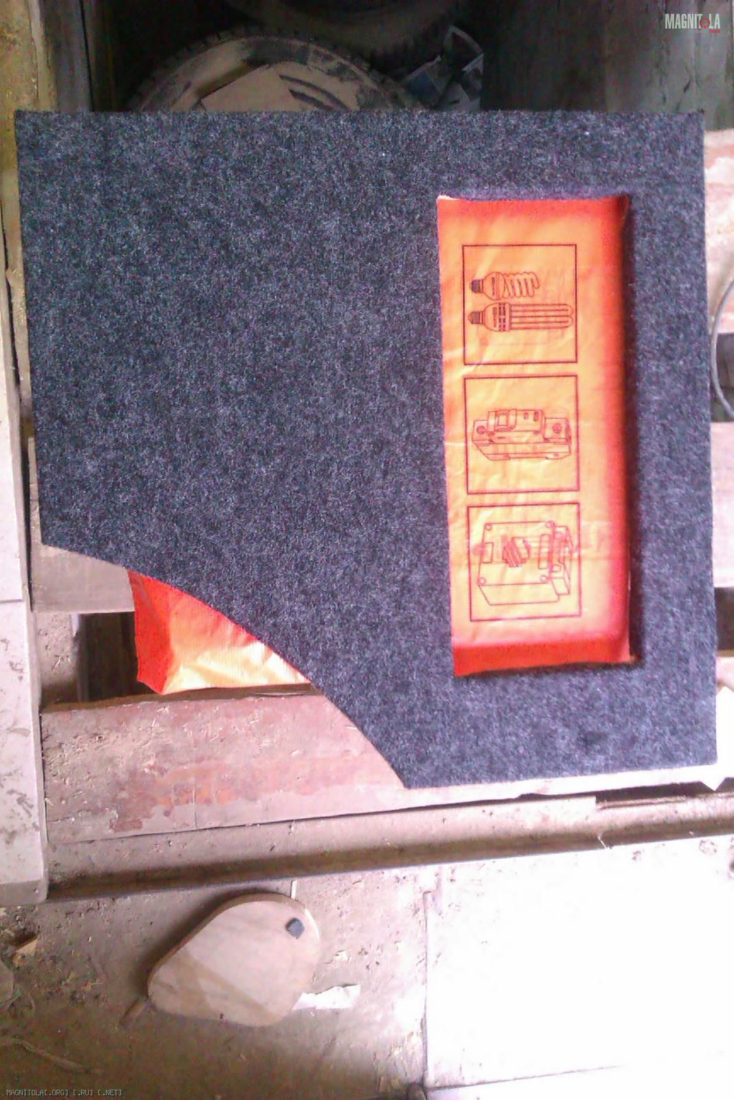 Так же был изготовлен подиум под усилитель: вырезан из 21мм фанеры, покрыт лаком и обтянут карпетом: