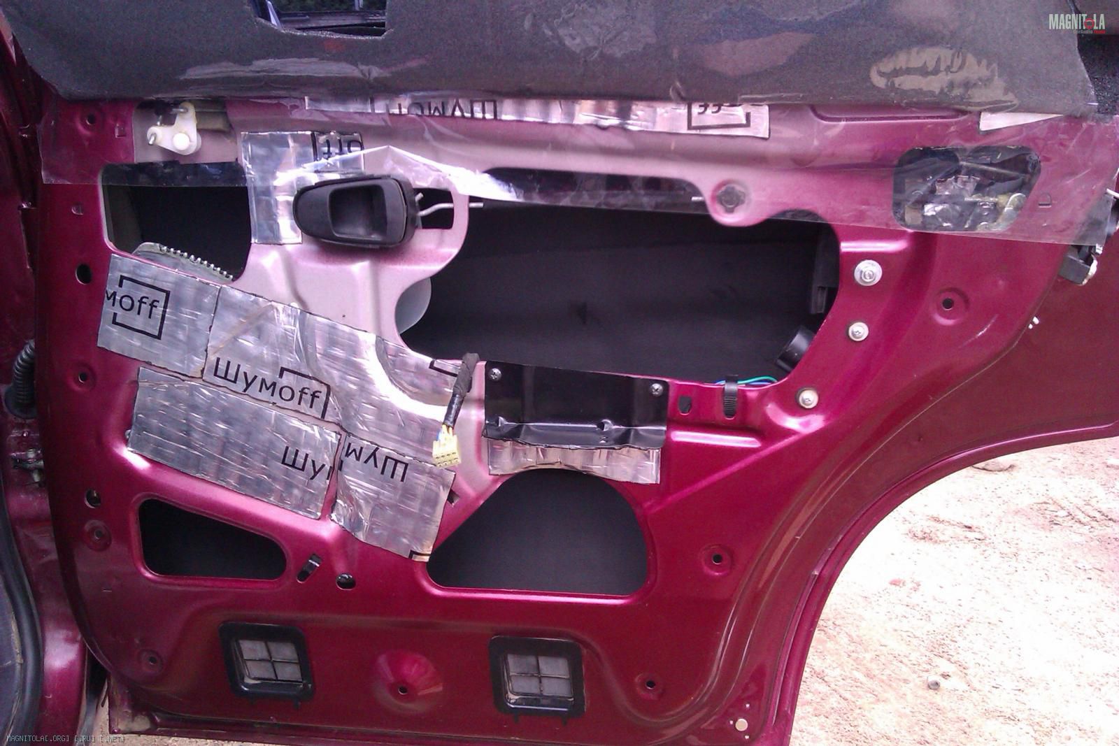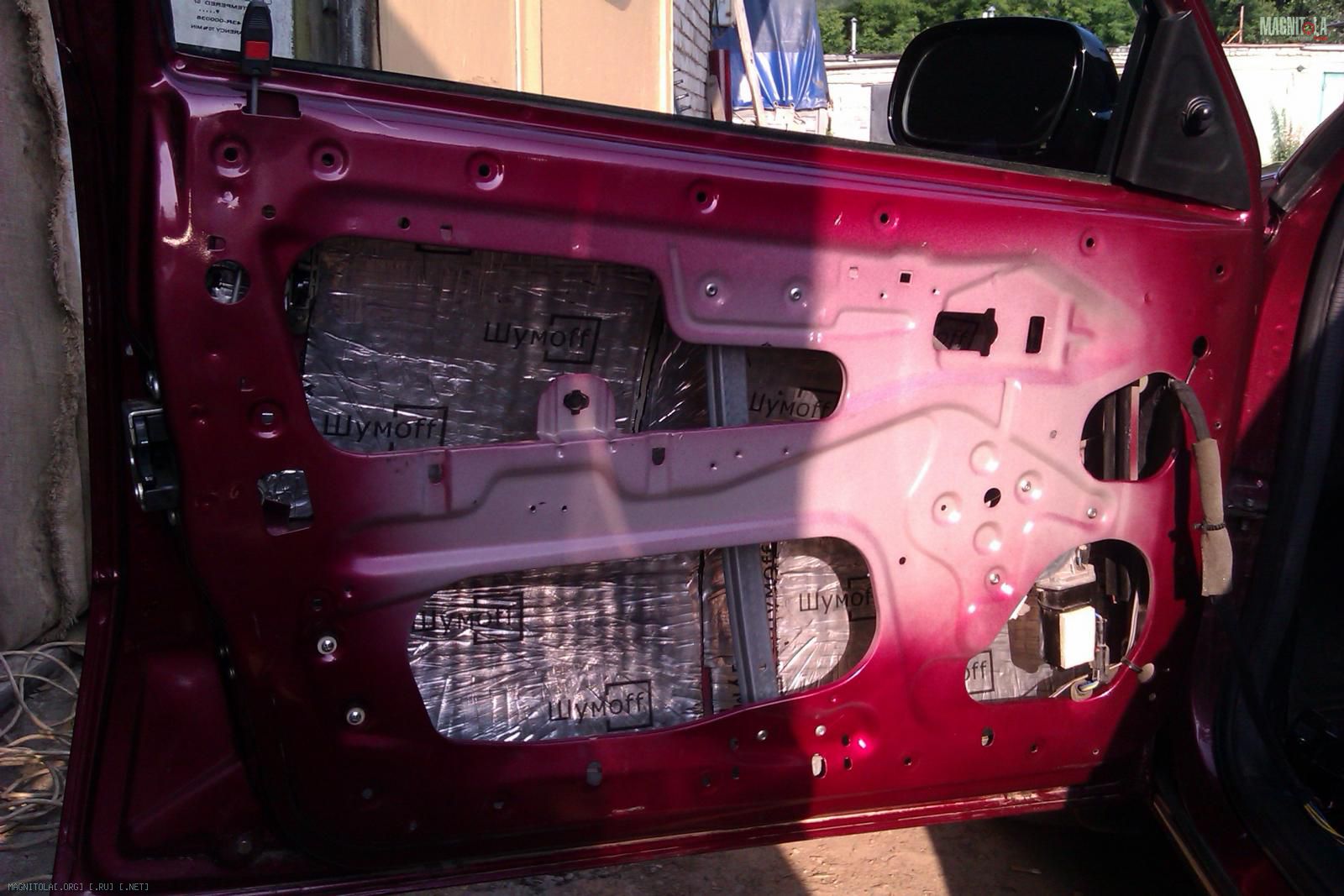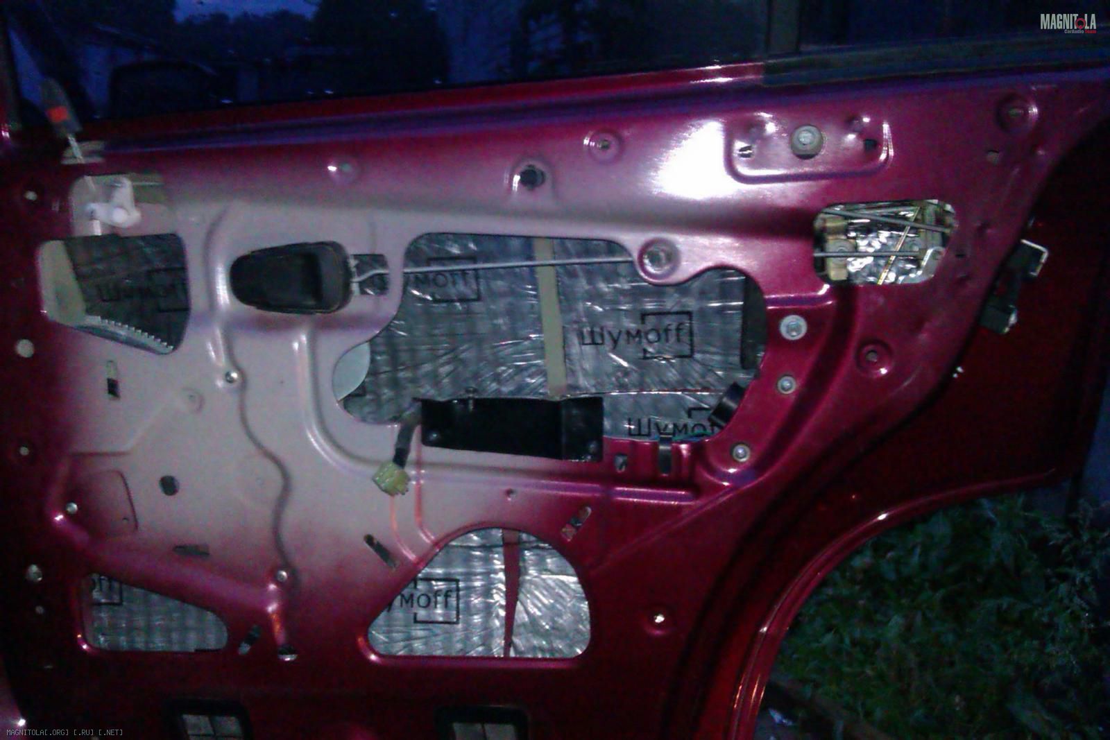 Начал с шумовиброизоляции: на внешнюю поверхность двери наклеил Шумофф М3 (ушло 4 листа), сверху Комфорт 6 (1 лист), под будущий подиум уложен Герметон А15 (квадрат примерно 30*30см). Все тяги обернуты Specific (1 рулон) и смазано литолом все что можно и нужно: Вложение 248834Вложение 248836Вложение 248838