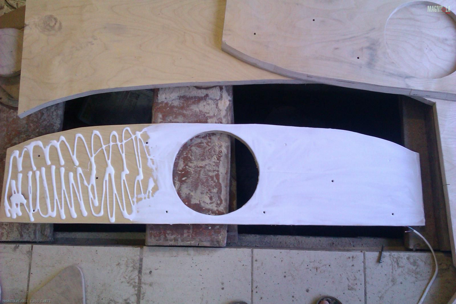 Вырезаем второй слой полки выпиливаем отверстие под саб и склеиваем их вместе: Вложение 256492Вложение 256496Вложение 256498