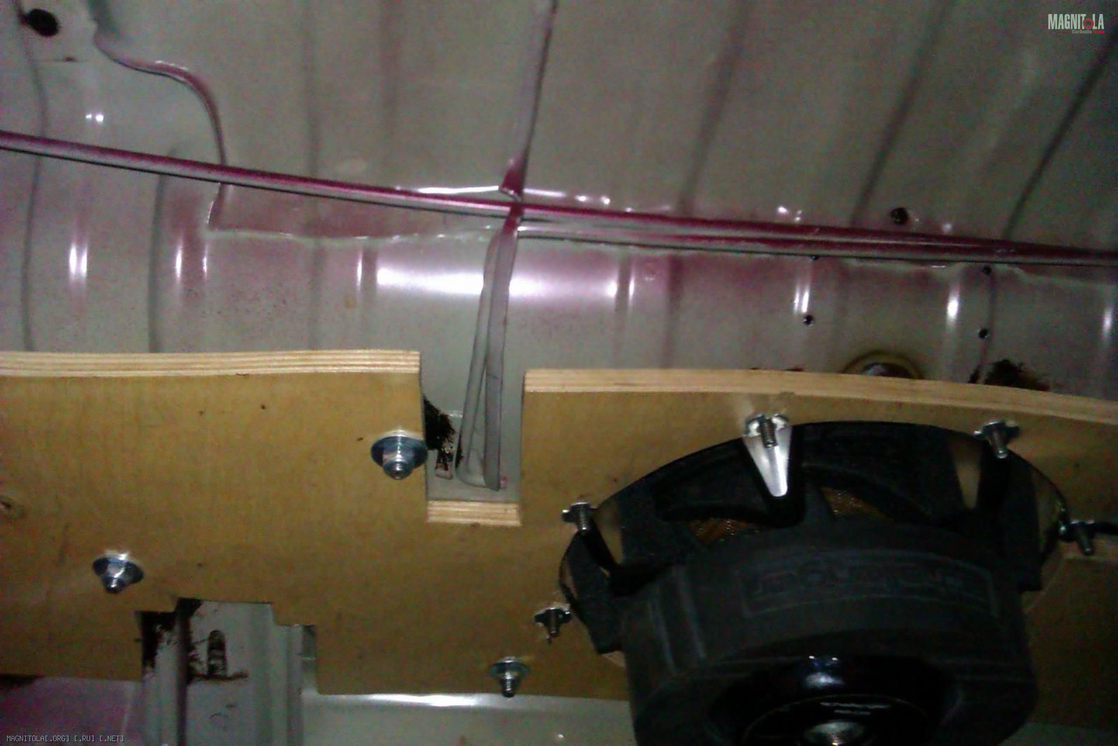 Была снята спинка задних сидений, боковые накладки и обшивка полки. Видно как не очень аккуратно были установлены, предыдущим хозяином, блины в полку: Вложение 256472