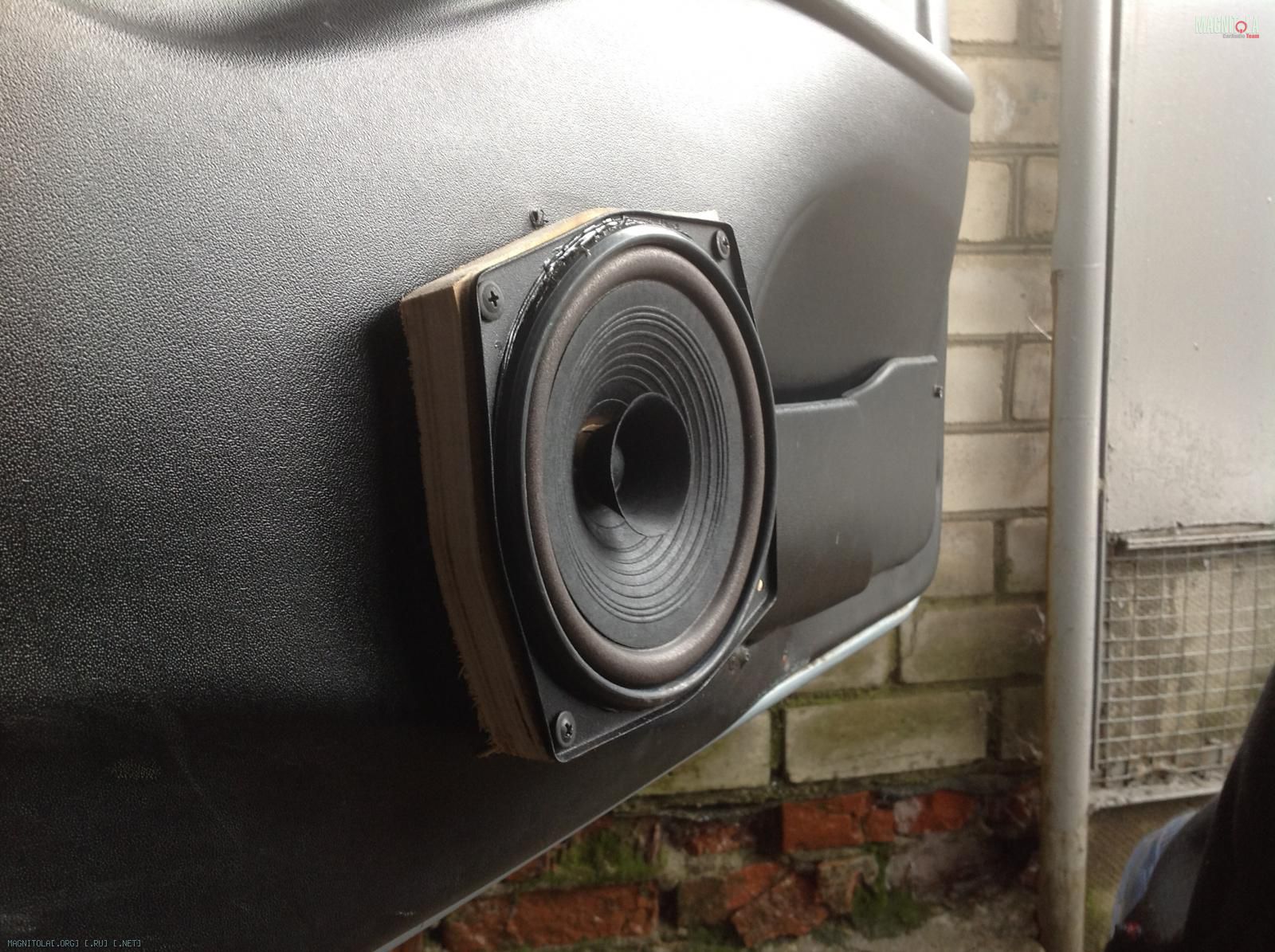 3.Миды.Правильнее даже не миды,а широкополсники,ибо речь идет о Ноэме 100-ГДШ655-4. Во первых пропал навязчивый перегруз на басе,который донимал меня на саундстримах.Признаться,до этого я грешил на уси,после смены убедился в очередной раз,что усь-бомба)) В родные места ноэмы не встали,поэтому на скорую руку я выпилил проставки из фанеры 21 мм и прикрутил их к обшивке.Почему на скорую руку? Все просто:дома был всего неделю,дел была куча,а оставить динамики дома,не установив и не опробовав их в авто я просто морально не мог))) Поэтому пока так. По дверям есть планы: после сессии,если даст Бог-все будет хорошо и будет время будем делать новые обшивки. Родные кромсать нет желания,денег на установку электровесел нет и желания на перенос мида в другое место тоже нет.Поэтому я решил купить фанеру 6-8 мм,выпилить форму стоковой обшивки по краям,к ней прилепить кольцо,которое уже можно будет довернуть на ручку кпп,установить что-то вроде шестерочных подлокотников для обшивки ибо,думаю,что должны подойти по отверстиям.В последствии можно будет заморочиться и покрасить все это дело в какой-нибудь черный глянец.