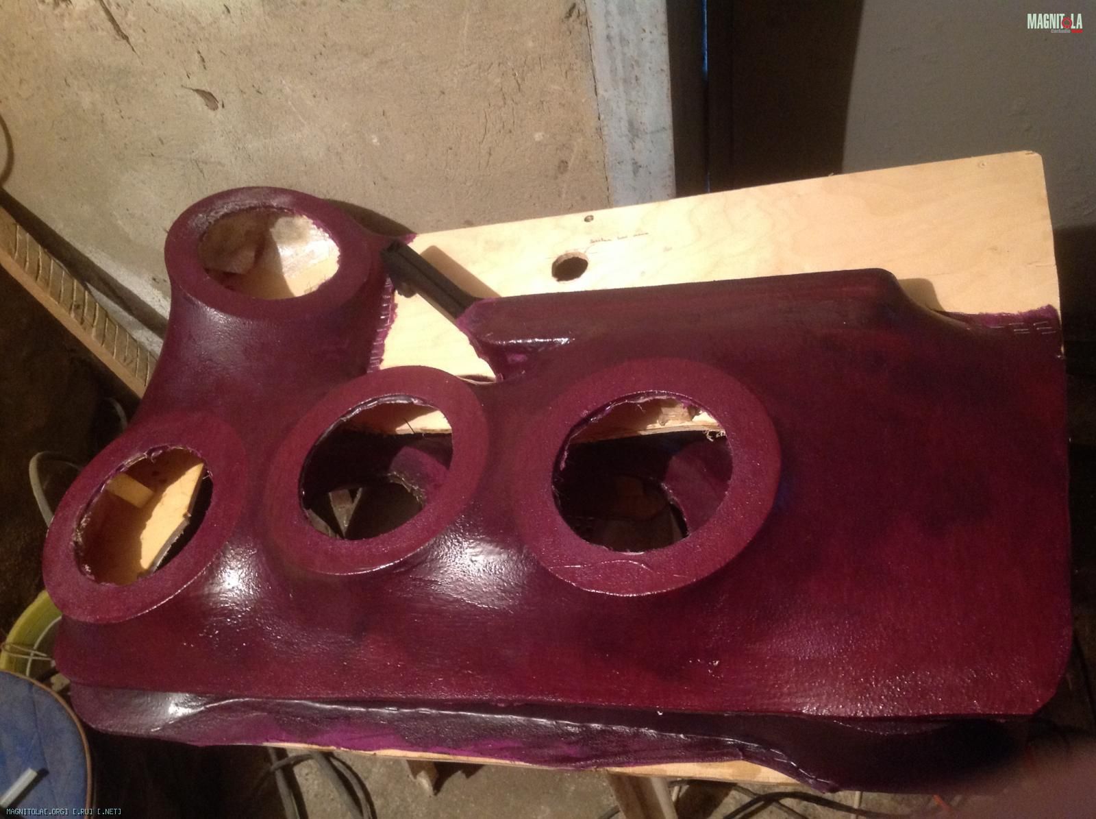 Далее,в силу конструктивных особенностей багажника,просто квадратный короб не помещался и было решено повторить форму стоек,которые залазили в отверстия короба старой доброй ПЭ. Отмечу,работал впервые.Жесткость набирал четырьмя слоями 450 стекломата.Вот что получилось