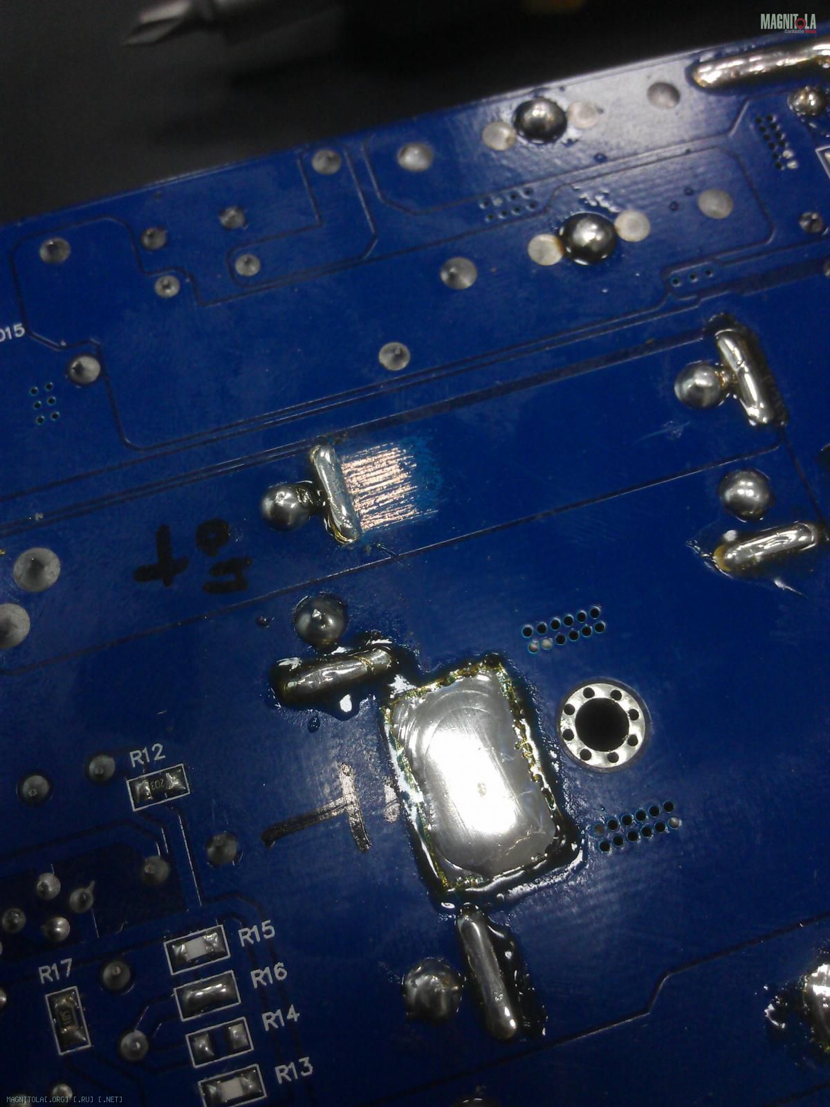 Потом готовим площадки для припаивания силовых линий.
