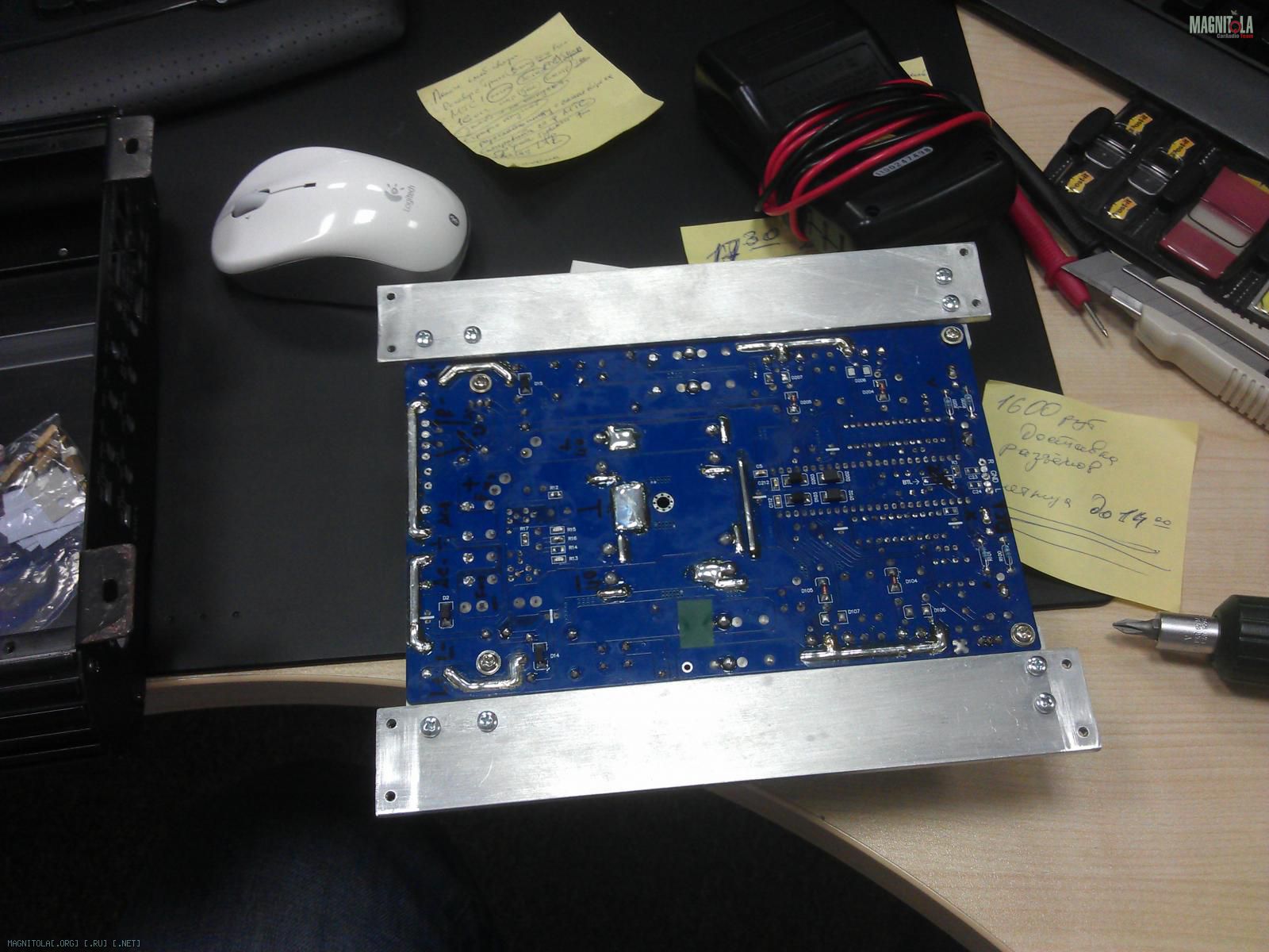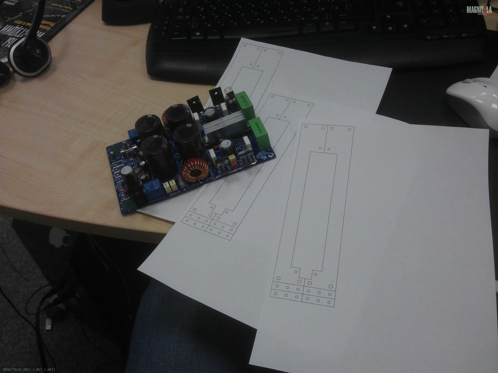 Тащим в офис, примеряем, размечаем отверстия под мосфеты и КРЕНку, размечаем отверстия в корпусе для крепления платы: