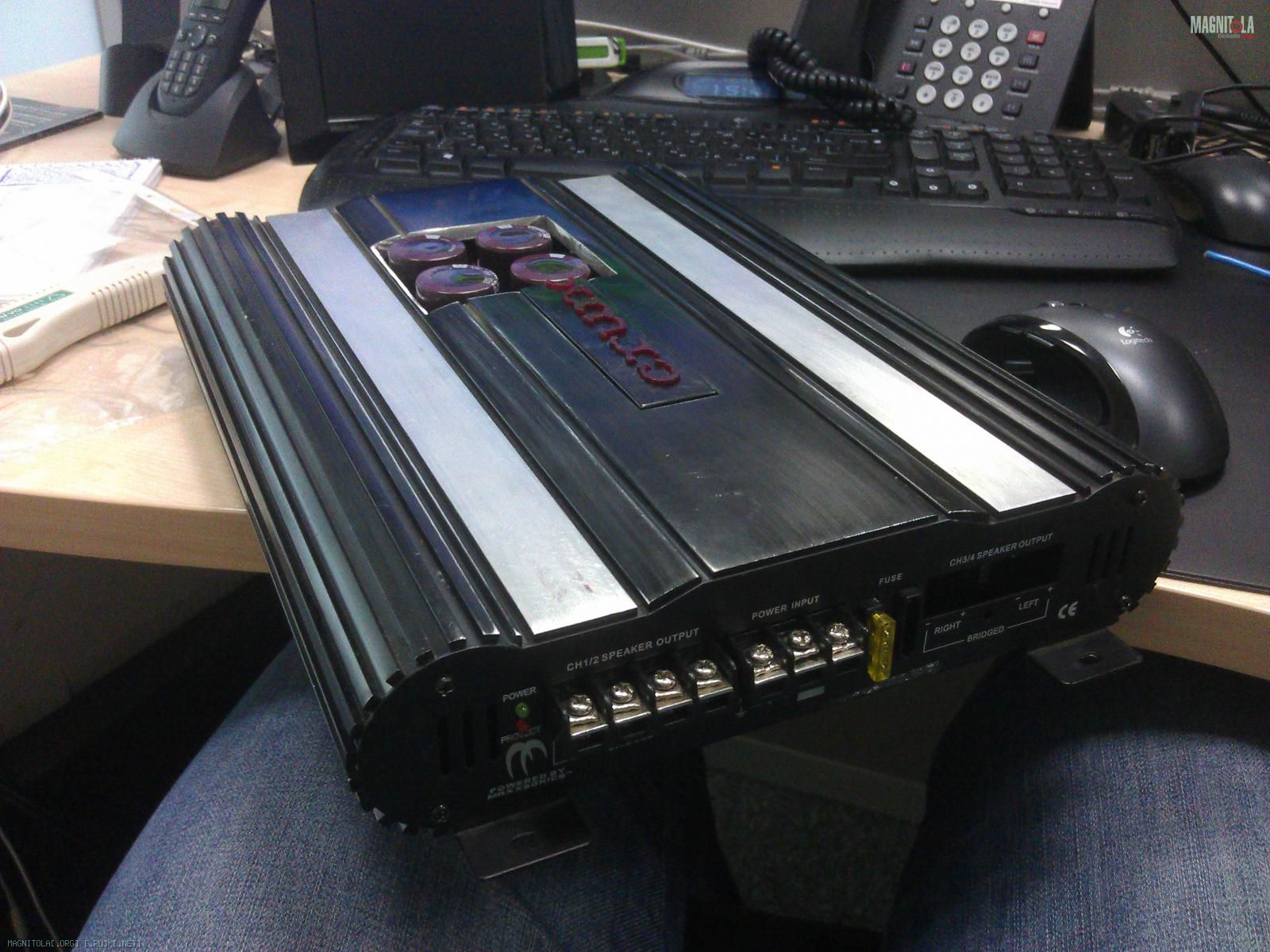 Усилок - мощный двухканальный, могущий работать мостом, T-класс.