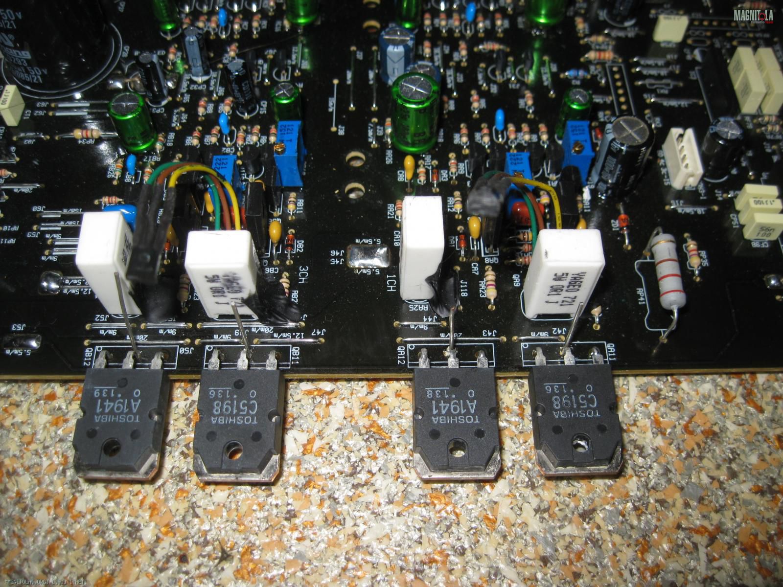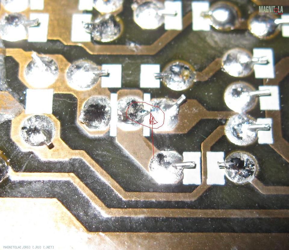 Сначала крупным планом мой косяк, из-за которого после моей пропайки усилок не завелся. Дяде Фёдору пришлось его искать с лупой:)