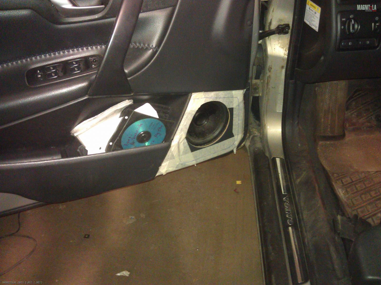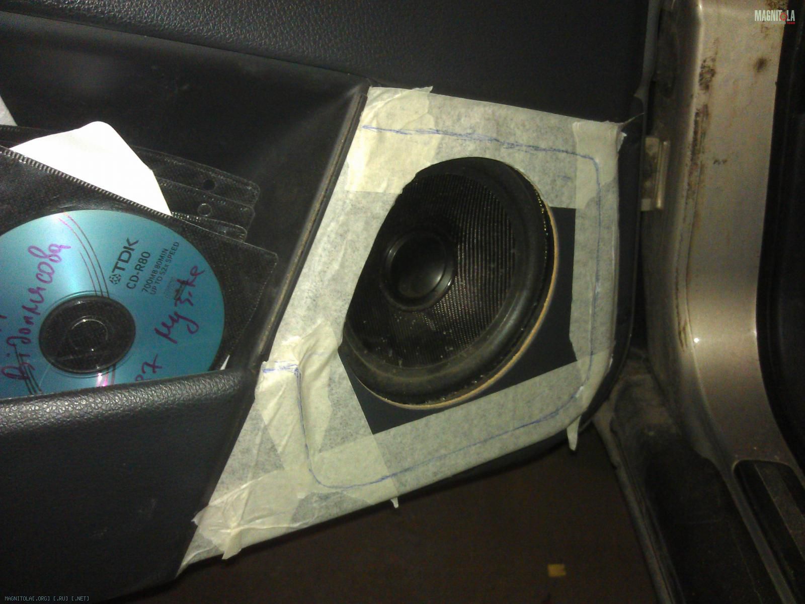 причём порезал вчера только одну обивку, прямо на двери. Сегодня ночером, если будут силы, сниму обе обивки и допилю. В левой отверстие надо расширить и сделать более аккуратными края