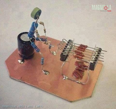 Что за каннибализм: человек-резистор готовит шашлык из резисторов.