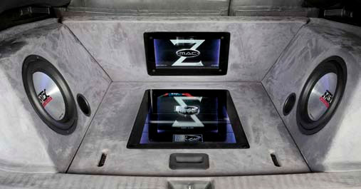 Потом посмотрю как будут располагаться усилители и сделаю в полу входы для всей проводки, выкрашу в черный цвет и внутри перетяну чем нибудь красивым.