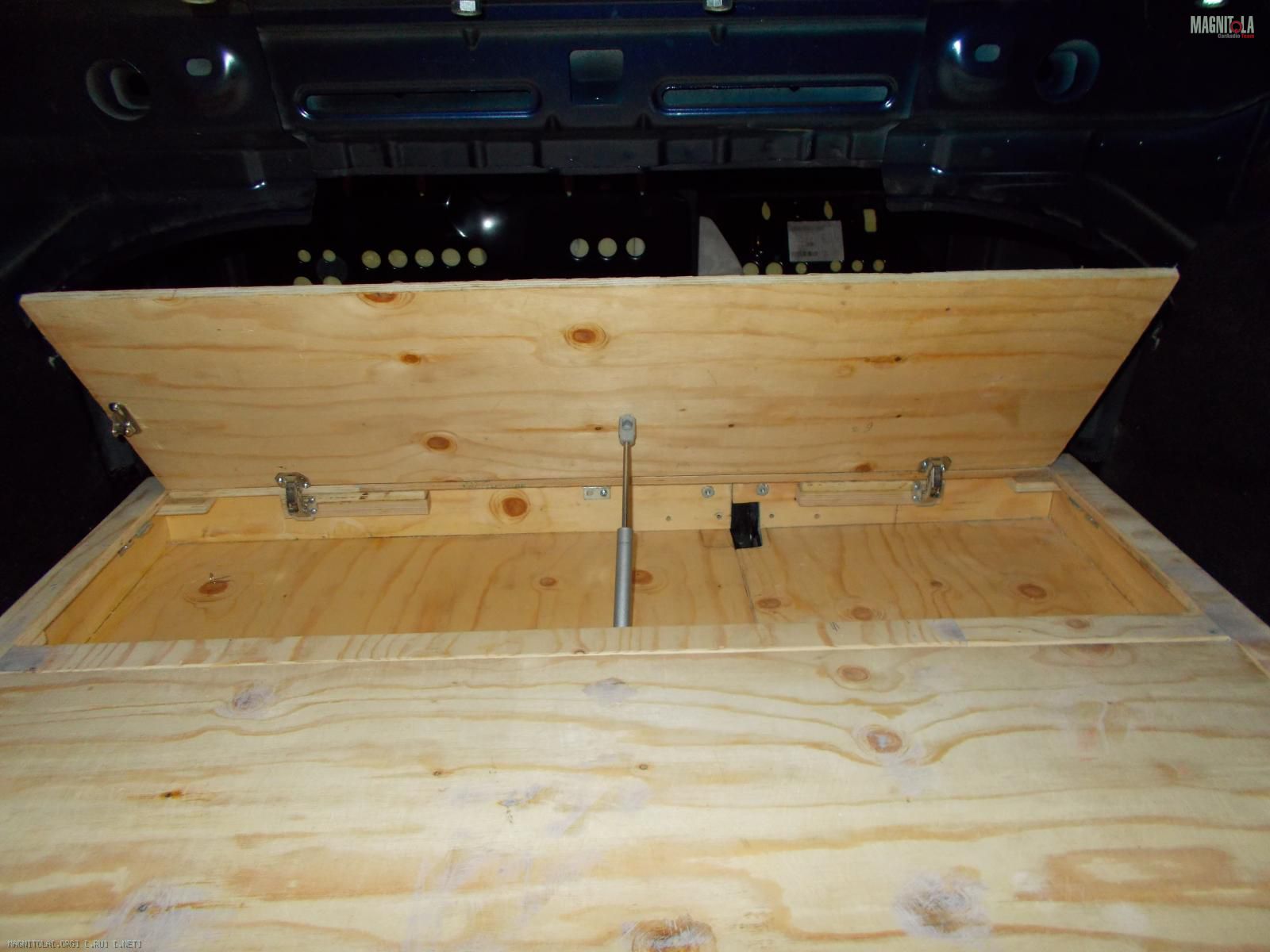 Начну с того что практически доделал фальшпол, он уже вышкурен, подогнаны все амортизаторы на крышках в месте с петлями, так же поставил все крепления фальша к нижней части пола!Завтра поеду заказывать стекла и начну потихоньку обтягивать черной алькантарой), так же будит диодная подсветка где стекла , думаю конечный результат будит похож на этот Вложение 290436 :good2:только черный.