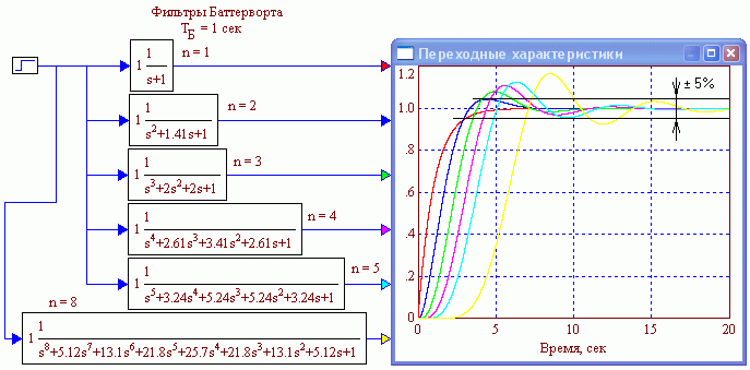 Тут разница между фильтрами разных порядков кажется особенно заметной. Максимальное (по амплитуде) значение ГВЗ для фильтра четвёртого порядка примерно вчетверо больше, чем у фильтра первого порядка и вдвое больше — чем у фильтра второго.