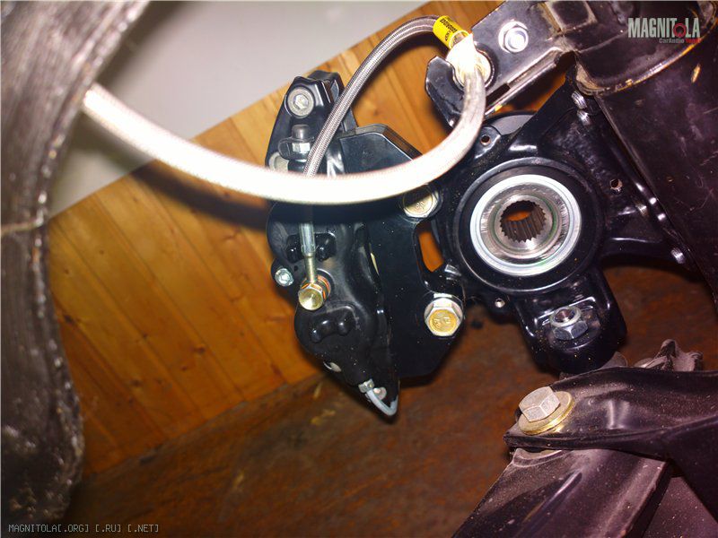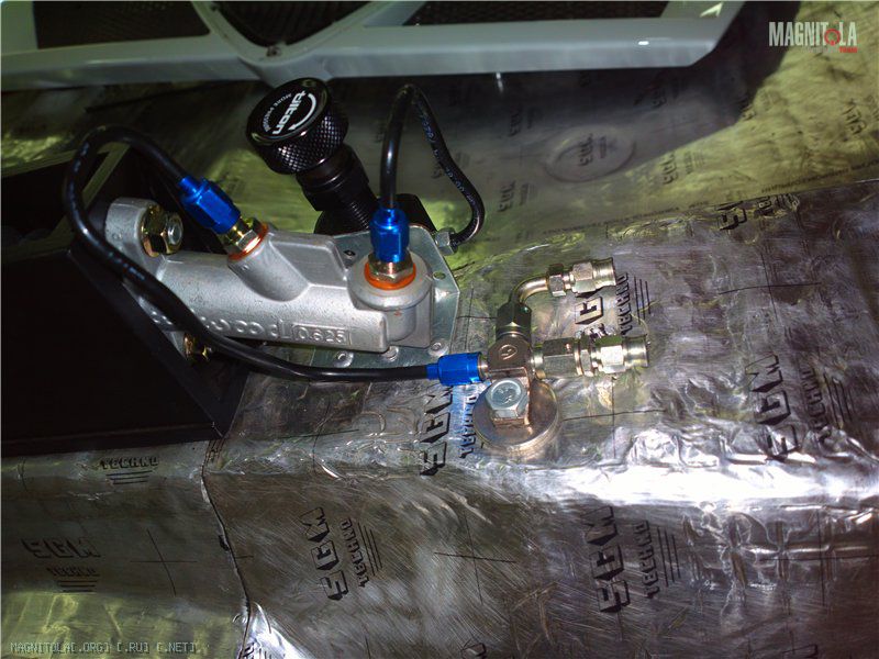 Потихоньку, степенно и расстановкой проект движется. Почти решён основной проблемный вопрос - тормоза. Оригинальные были заменены на 4рот/2рот, установлен гидроручник. Соответственно требовалась замена тормозной магистрали. Пришлось покупать не самый дешёвый инструмент, кучу трубок и фитингов. Получилось также срастить гидроручник с родной рукояткой при помощи хендмэйд платформы. И если бы не определённые ограничения в возможности изгибания трубок, встал бы даже родной пластик. А так придётся думать некий подлокотник, т. к. по высоте не проходит. Собственно, тормозной вопрос был бы уже решён, если бы не закончились трубки - первоначально задние тормоза планировали подключать шлангами сразу от ручника, но потом от этой идеи отказались - трубки всё же надёжнее. Немного фото: