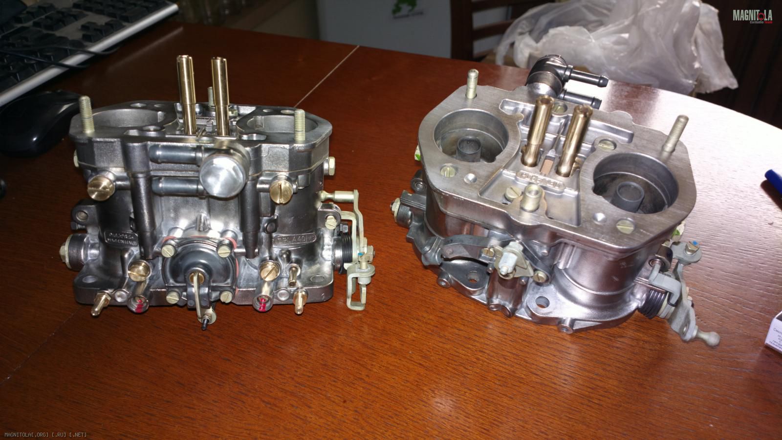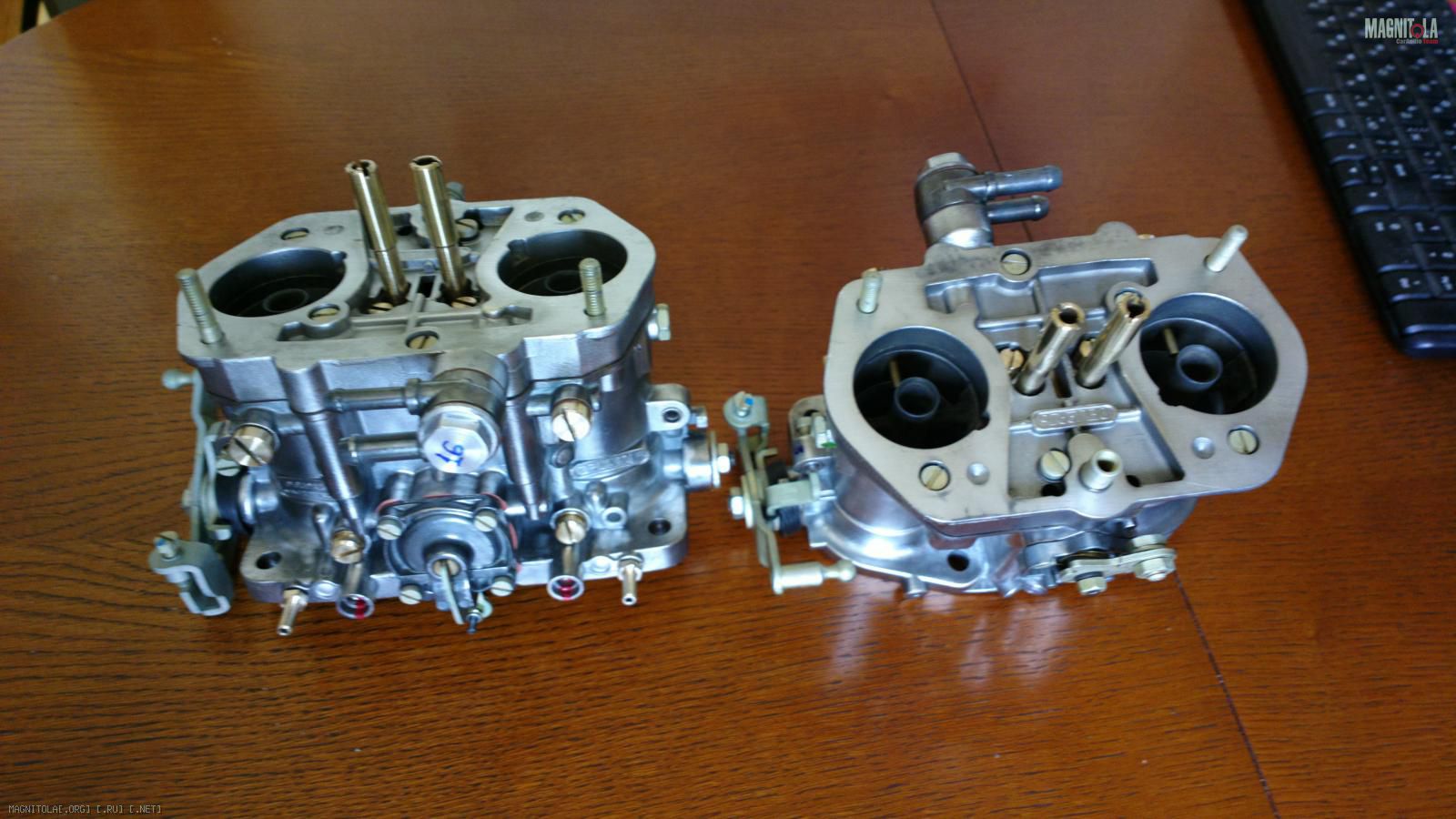 Также из нештатных вопросов остаётся топливная система. Ждём новый бак, т. к. наш оказался с дырочками ) Механический бензонасос будет заменён на электронный. Магистрали будем класть только после установки двигателя с карбюраторами, без них никак. Да! Ещё счастье - забрали из переборки карбы - полный восторг, мастер с золотыми руками! Стали новыми.