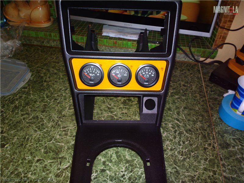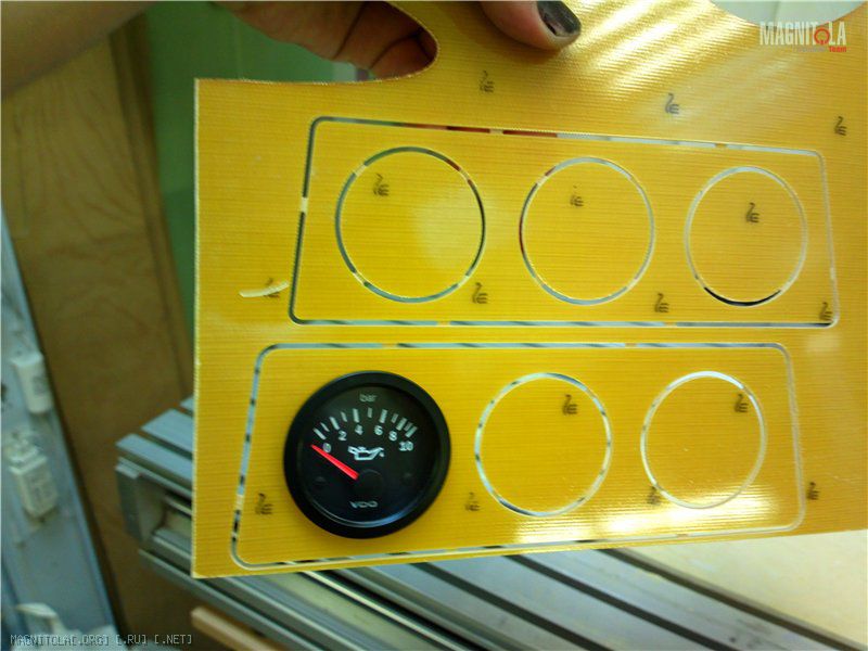 В гараже сейчас уже не жарко, потихоньку дома лечим салонный пластик. Всё страшное и поломанное. Смола и краска помогли ) Также изначально были куплены допприборы: температуры/давления масла и вольтметр. Решили ставить вниз. Рамка модная =) на чпу из текстолита