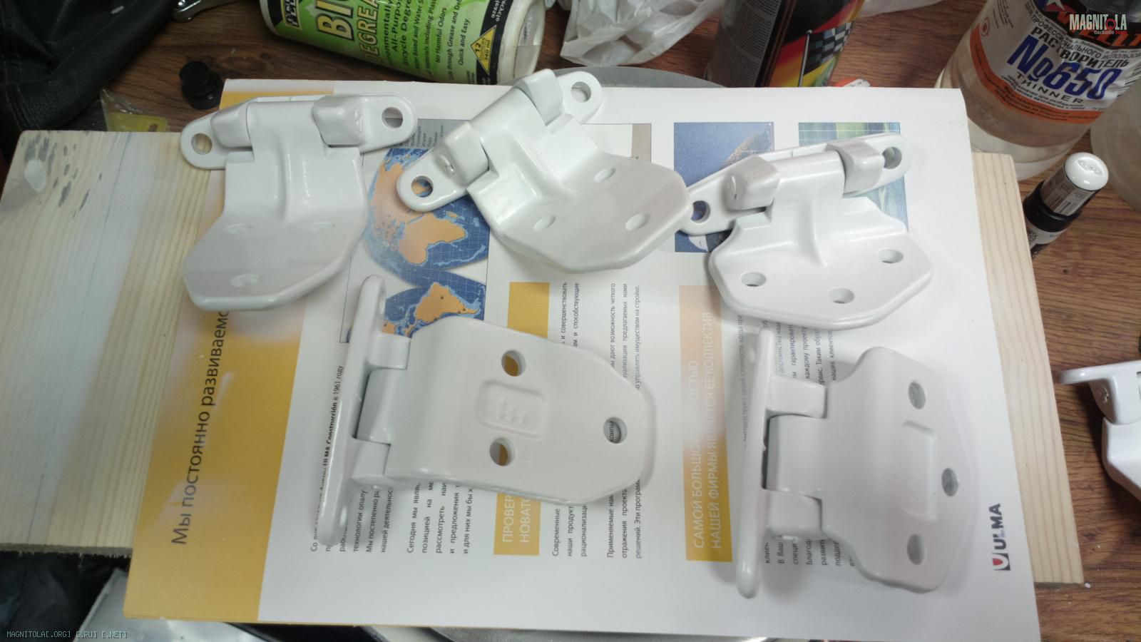 Скоро весна ) Постепенно готовим дома навесную кузовню. Двери собраны уже давно, задние даже сразу затонировали ) Огромную проблему представляли петли, я на них год смотрела и не знала как подступиться - ржавые, грязные, страшные и естественно неразборные. Полторы недели отмачивания в 650-ом растворителе помогли избавится от остатков старой краски даже в труднодоступных местах. Потом бессчётное количество раз промывания ВДшкой - петельки работают как новые (до этого открывались/закрывались при помощи молотка). Потом спа-процедуры в кислоте и снова промывания полоскания. Ну и собственно покраска. Казалось бы такая мелочь, а времени как всегда отняла вагон. Но с этой машиной уже привычно, просто с ней ничего не бывает )
