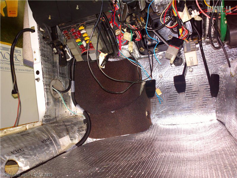 По салону всю проводку проложили. Чтобы положить ковёр, пришлось набирать высоту. Старые ватные маты, которые были под ним, вытряхивали кусками, настолько разложились. Очередной зачёт по курсу кройки и шитья )))