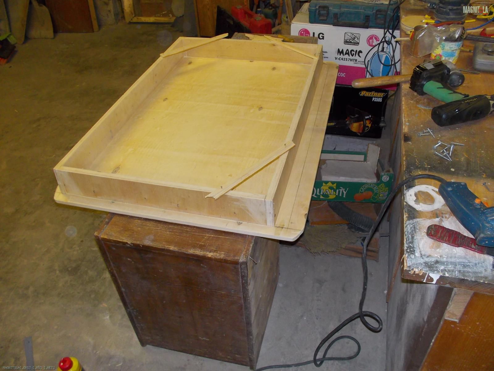 таки оставил бы вообще без петель, а просто так пущай валяется этот ящик на полу. сделаю фиксирующие его винты и пару петелек чтобы поднимать..