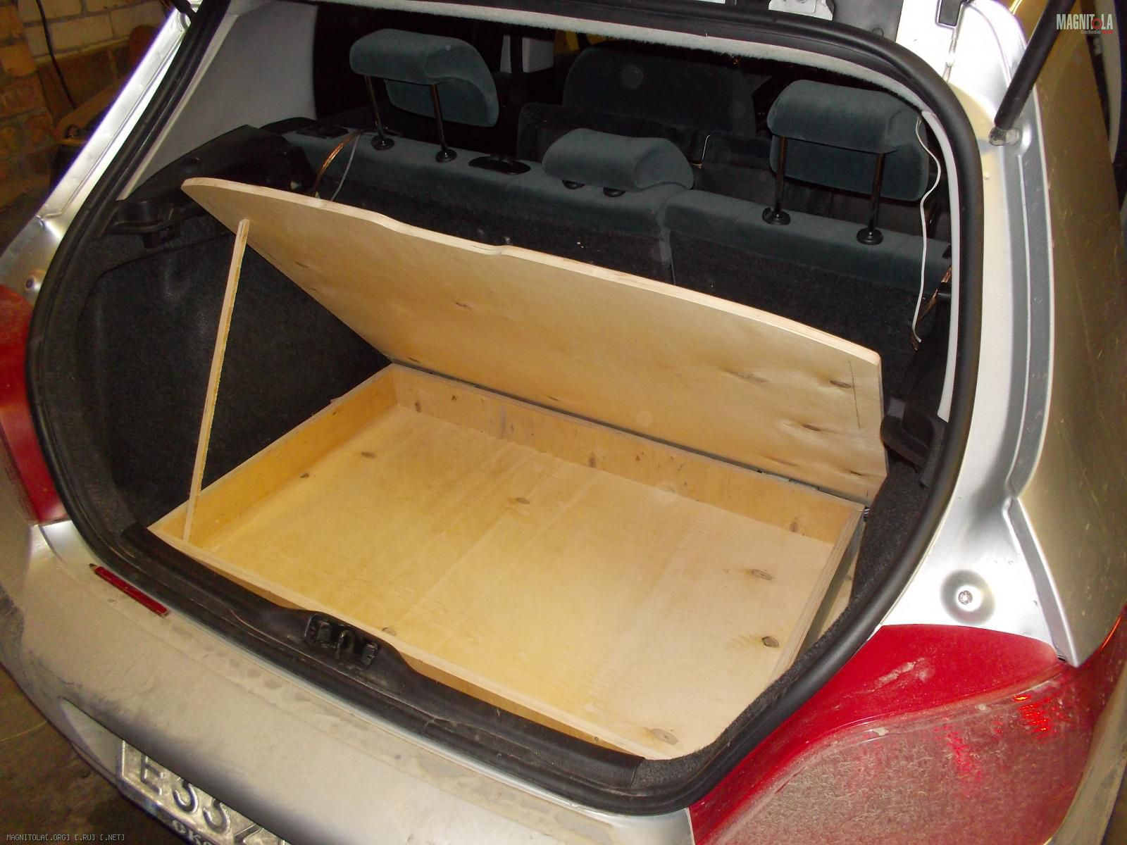В итоге ящик в таком виде при подъеме для доступа к запаске будет упираться в сидение. Надо переносить заднюю стенку..но тогда в штатном режиме там скорее всего будет щель, в которую наверняка чтото будет проваливаться...как то я пока в замешательстве что сделать.