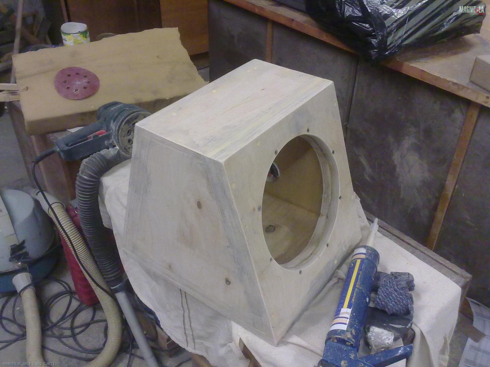 На будущее..никаких сабов из фанеры, извернуться но купить МДФ... уж очень звонка фанера. пришлось снутри еще немного проклеить виброй.