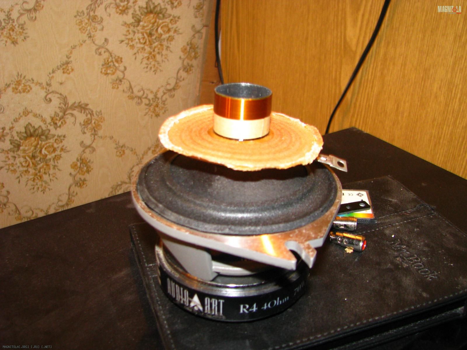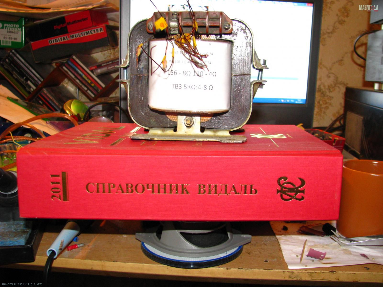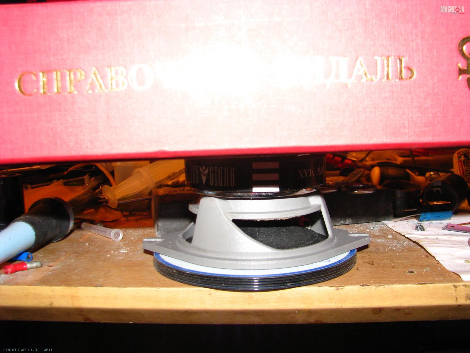 Потом намазал клеем, вставил диффузор, отцентровал, собрал динамик и положил под пресс на 12 часов. В качестве пресса справочник Видаля, и перемотанный ОСМ-0.4