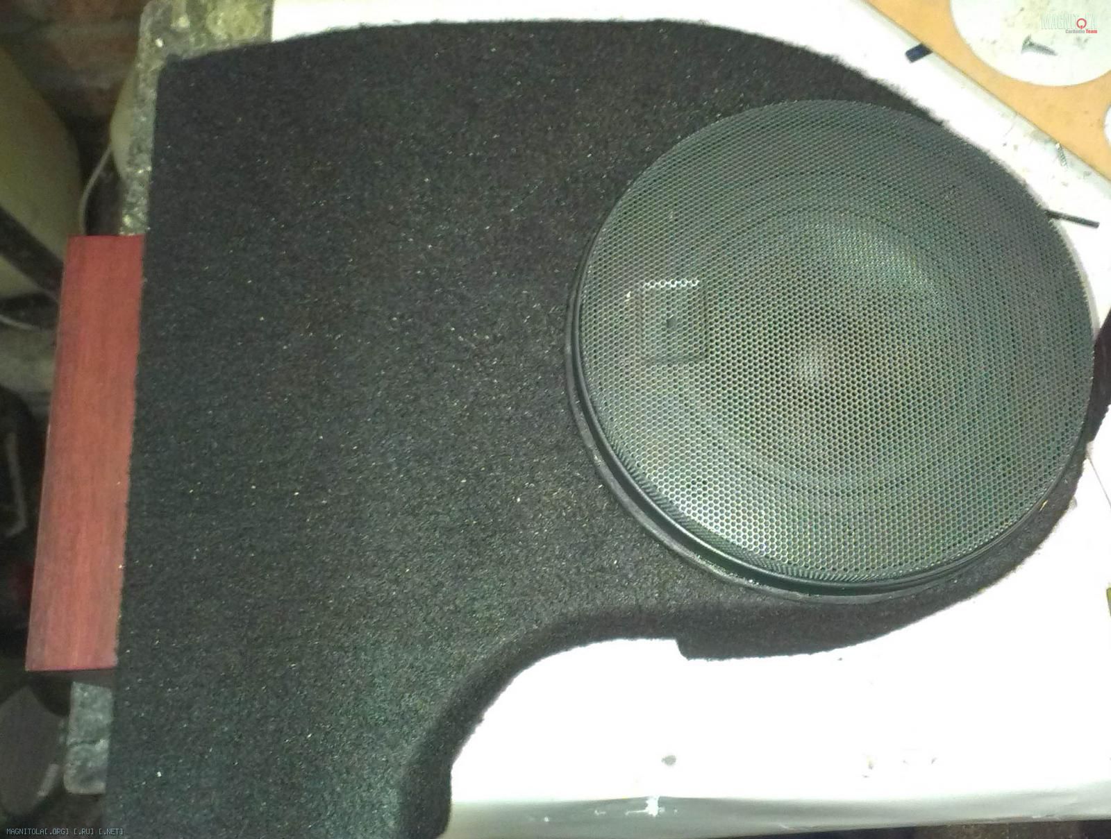 Был совершен героический подход к двери. Имеем в запасе Гибриды 5" - делаем под них подиум самый простой в виде накладки на обшивку. Жестко притягиваем 3шт. М5 к металлу через обшивку. Вложение 321600