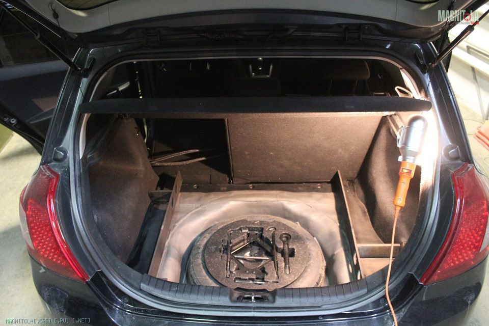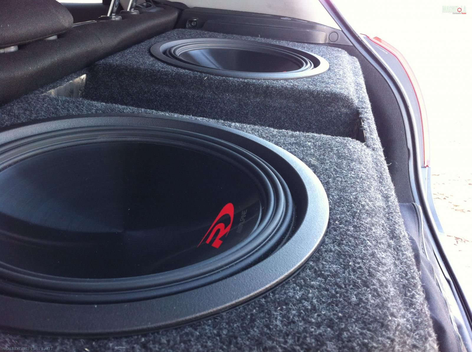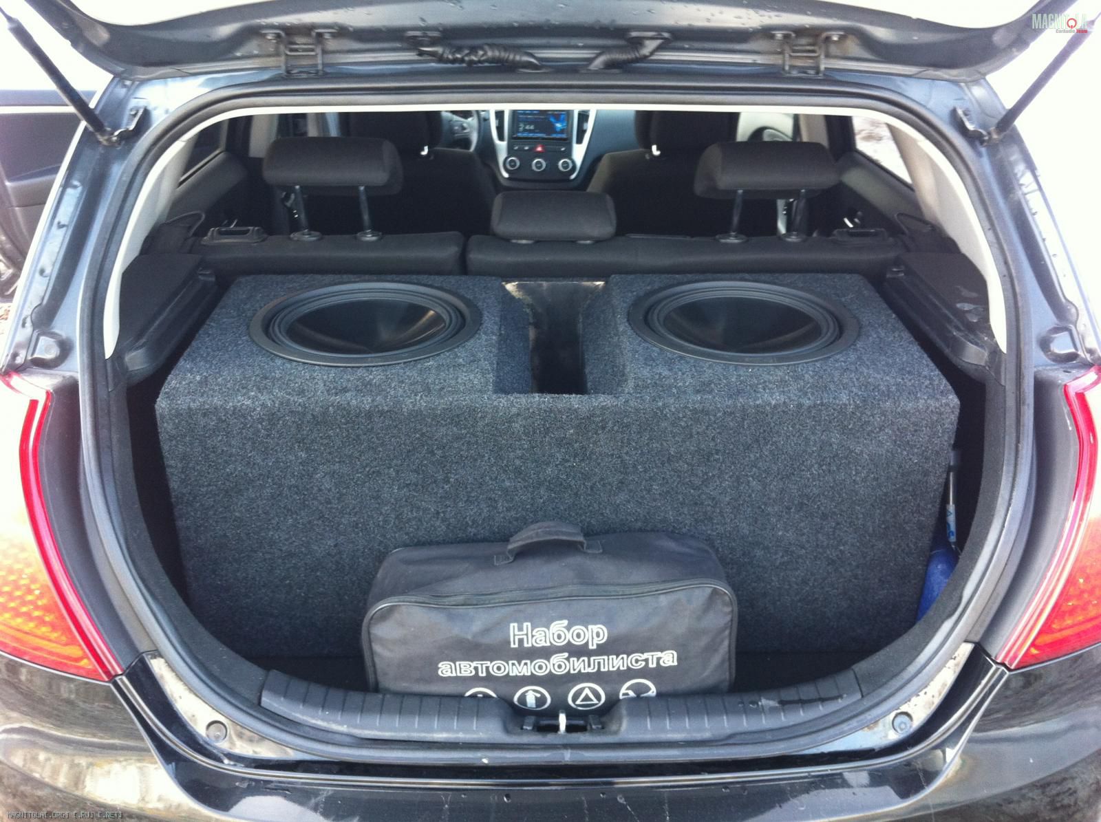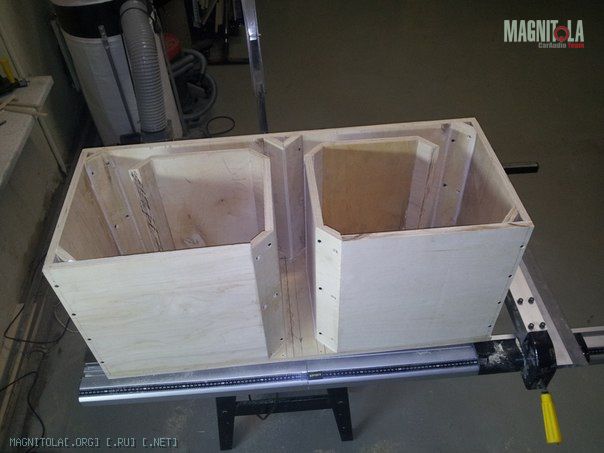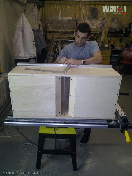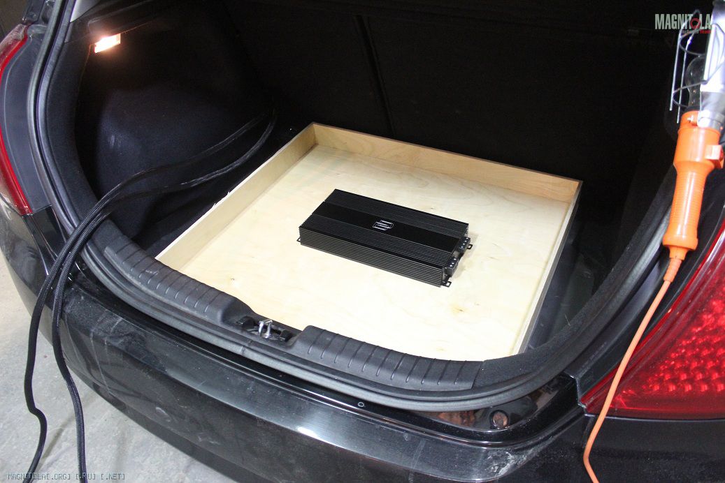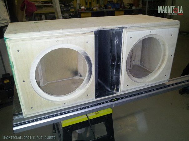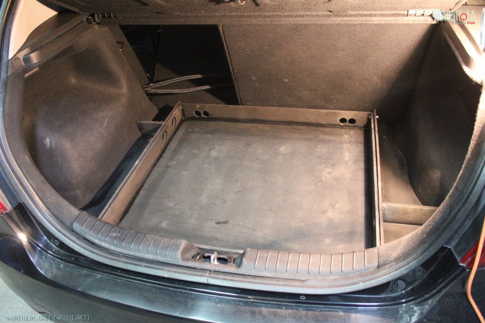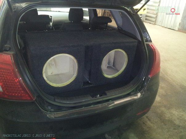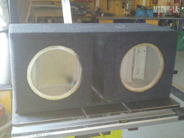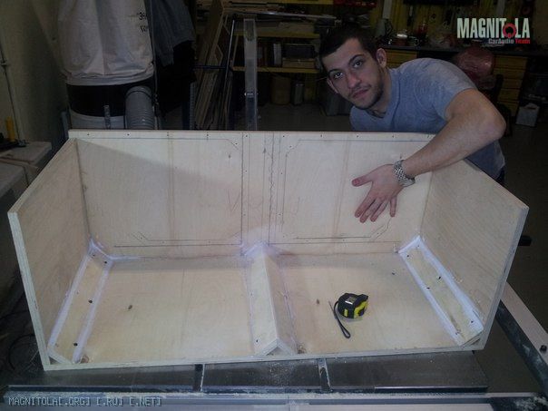 2. Помимо подиумов под акустику, мне нужен был коробок под два сабика Alpine SWR-12D4. Как сказал выше, пилить самому мне было негде, и я решил обратиться за помощью к одному хорошему человеку и другу. Зовут его Алексей Рогачёв, более известный как Аполлон. Приехал к нему, замерили пространство багажника, обговорили сроки (хотя спешить мне было некуда) и довольный уехал домой. Результат работы Алексея виден на фото. Коробок получился отменный, за что дяде Лёше и ABT Audio огромное спасибо.