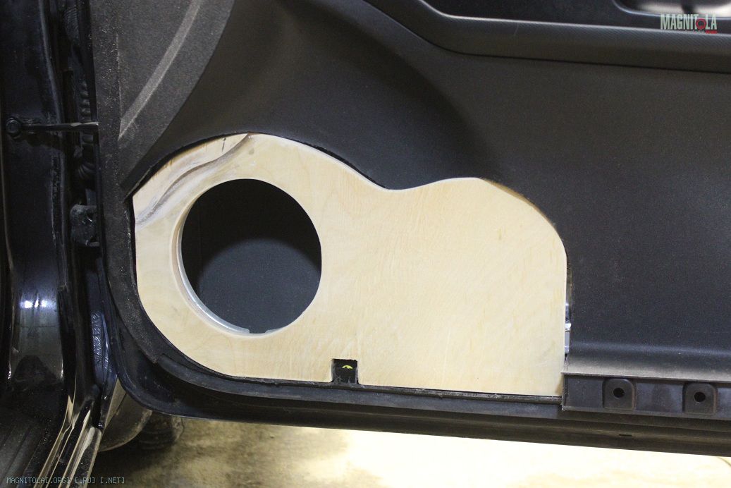 1. Установка сдвоенного фронта влечет за собой изготовление соответствующих подиумов. У самого бы это вряд ли нормально получилось, я со смолой ни разу не работал. Поэтому доверил это дело профессионалам из студии DemoCar (раньше называлась S.A.DemoCar), а именно Стасу. так же решил делать у него и фальш-пол под усилители, самому просто негде этим заниматься. Сделано было все очень грамотно и качественно, за что Стасу огромное СПАСИБО и УВАЖЕНИЕ! В итоге получаем подиумы на обшивку дверей под сдвоенный мидбасс и подиумы под твиттер в уголи зеркал. А так же фальш-пол с доступом к докатке и боковыми отсеками для мелочевки.