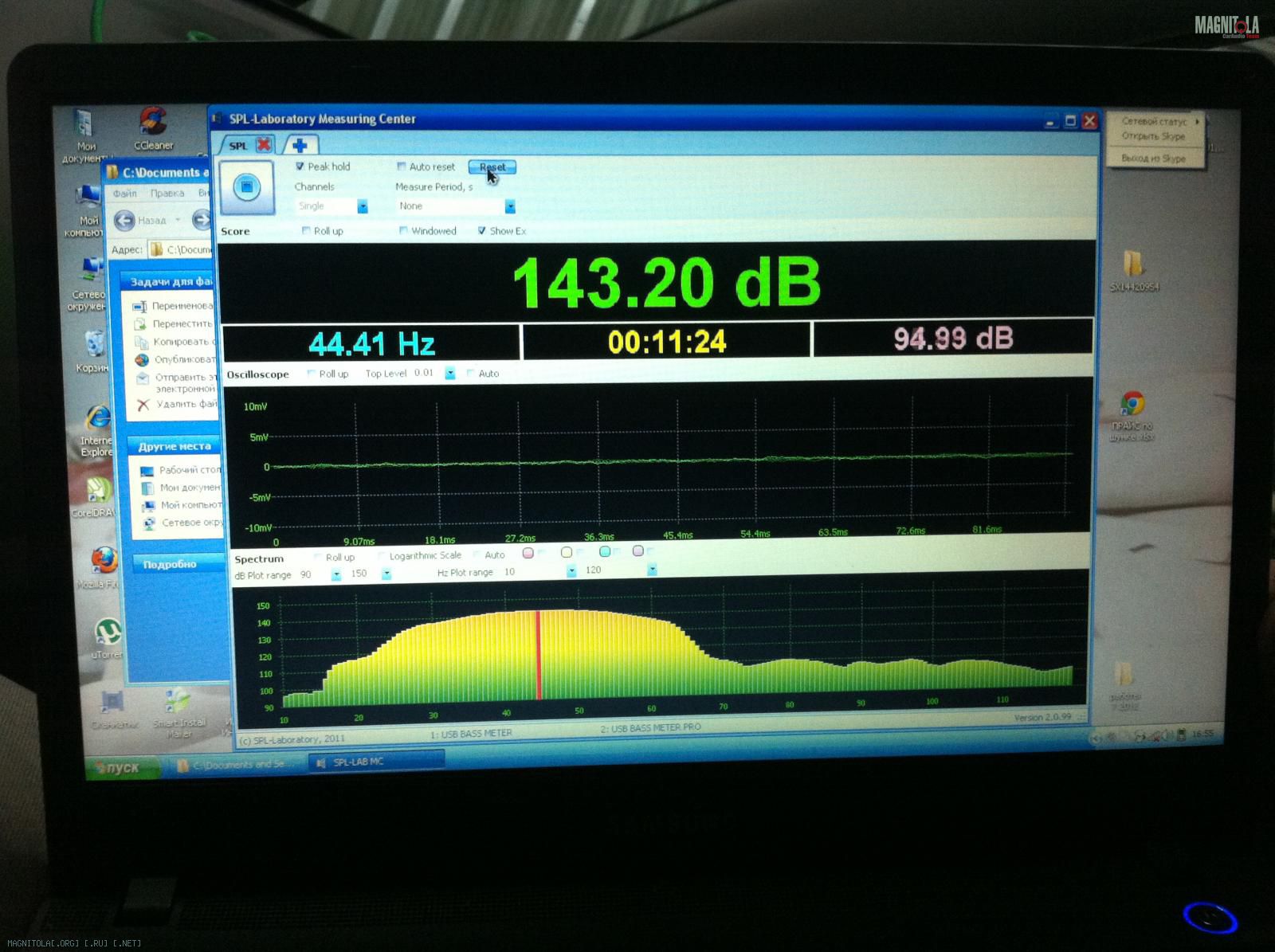 Есть уже фото замера, сколько давят не размятые R-ки от одного моноблока DD M1c. Первый замер на свип-тоне, второй на музыке.