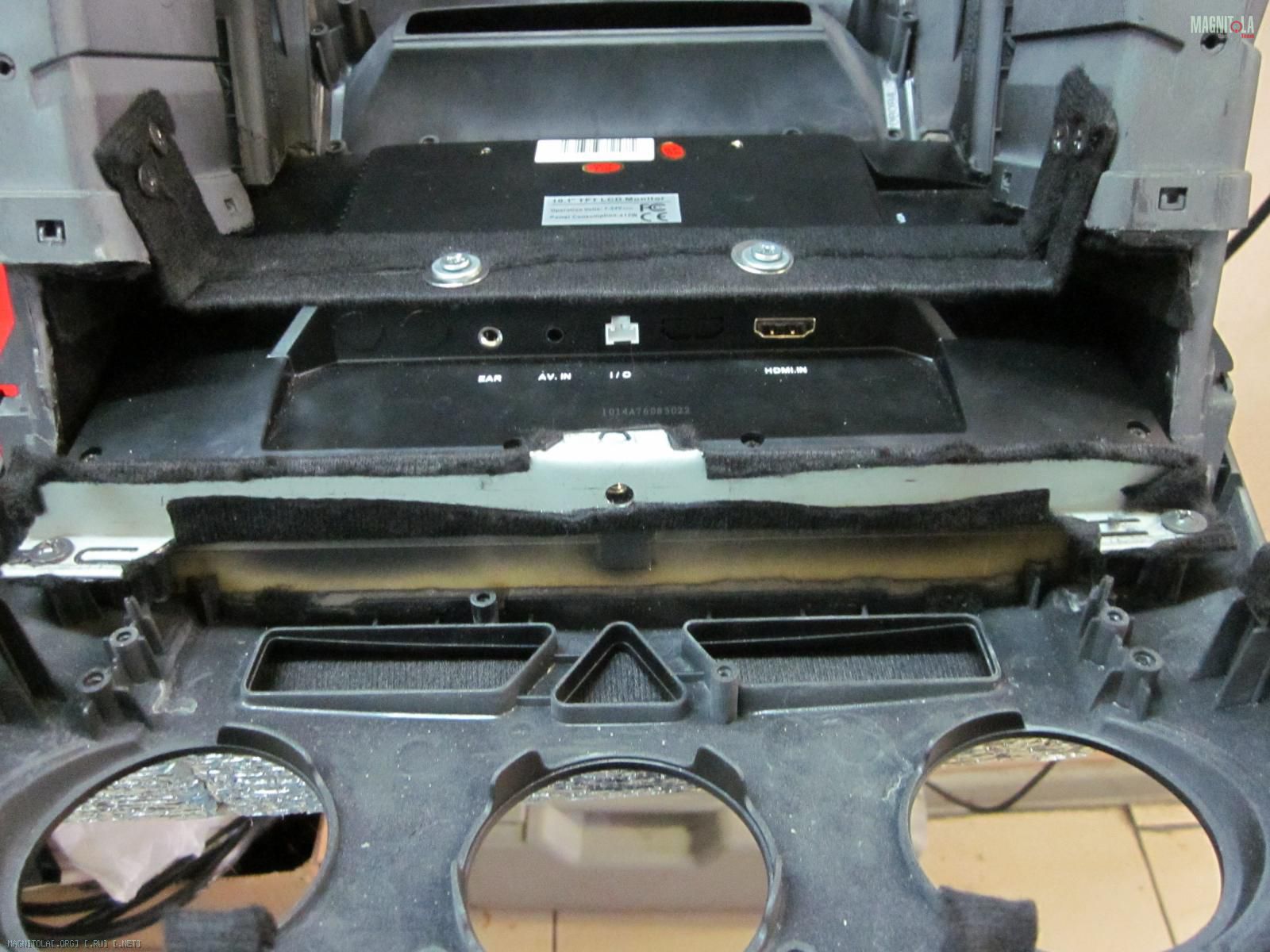 Вроде бы здесь не освещал данную тему - студия democar.pro в лице Стаса сделала мне рамку под мой "маленький" мониторчик, а я немного доработал крепление.