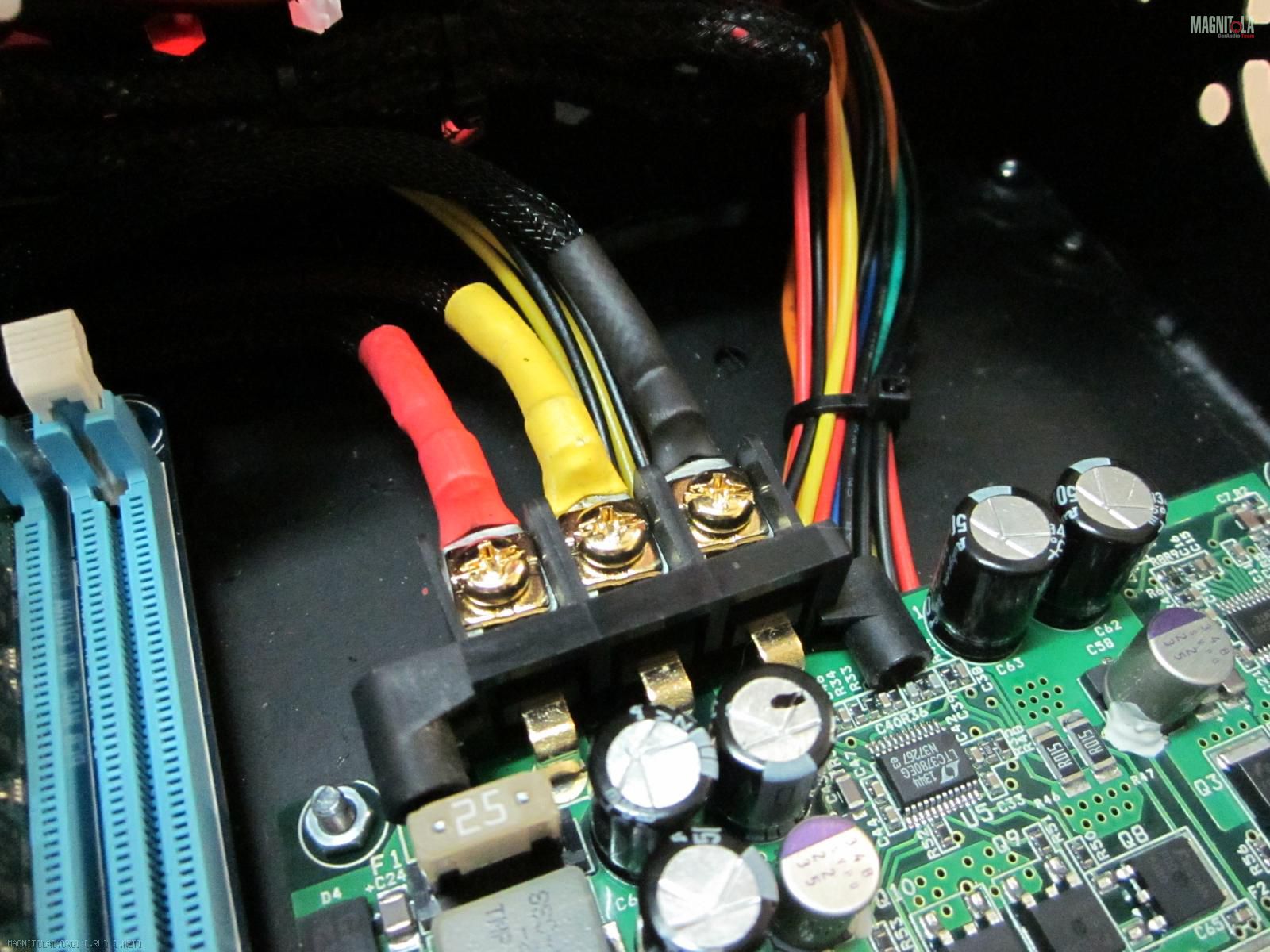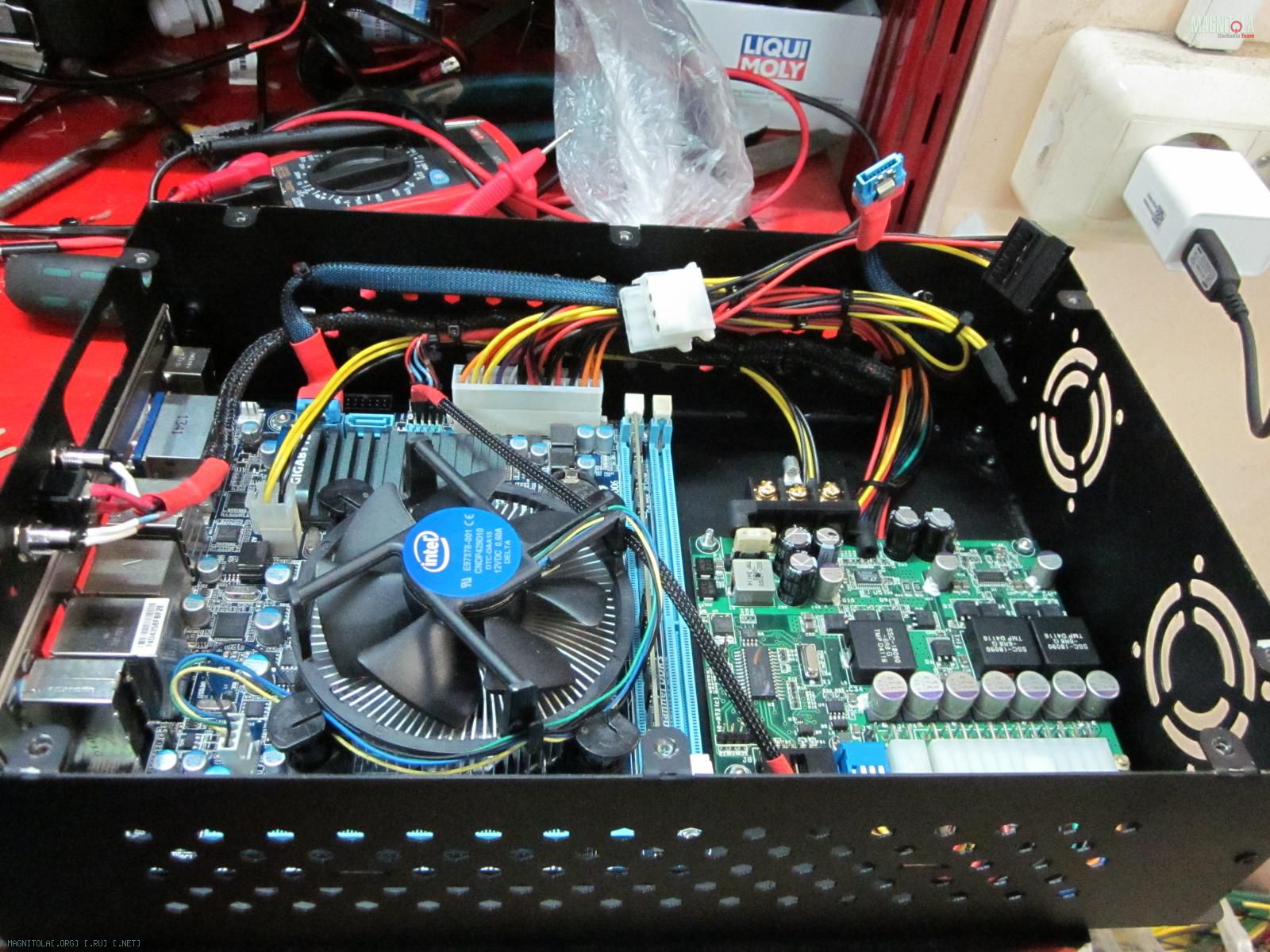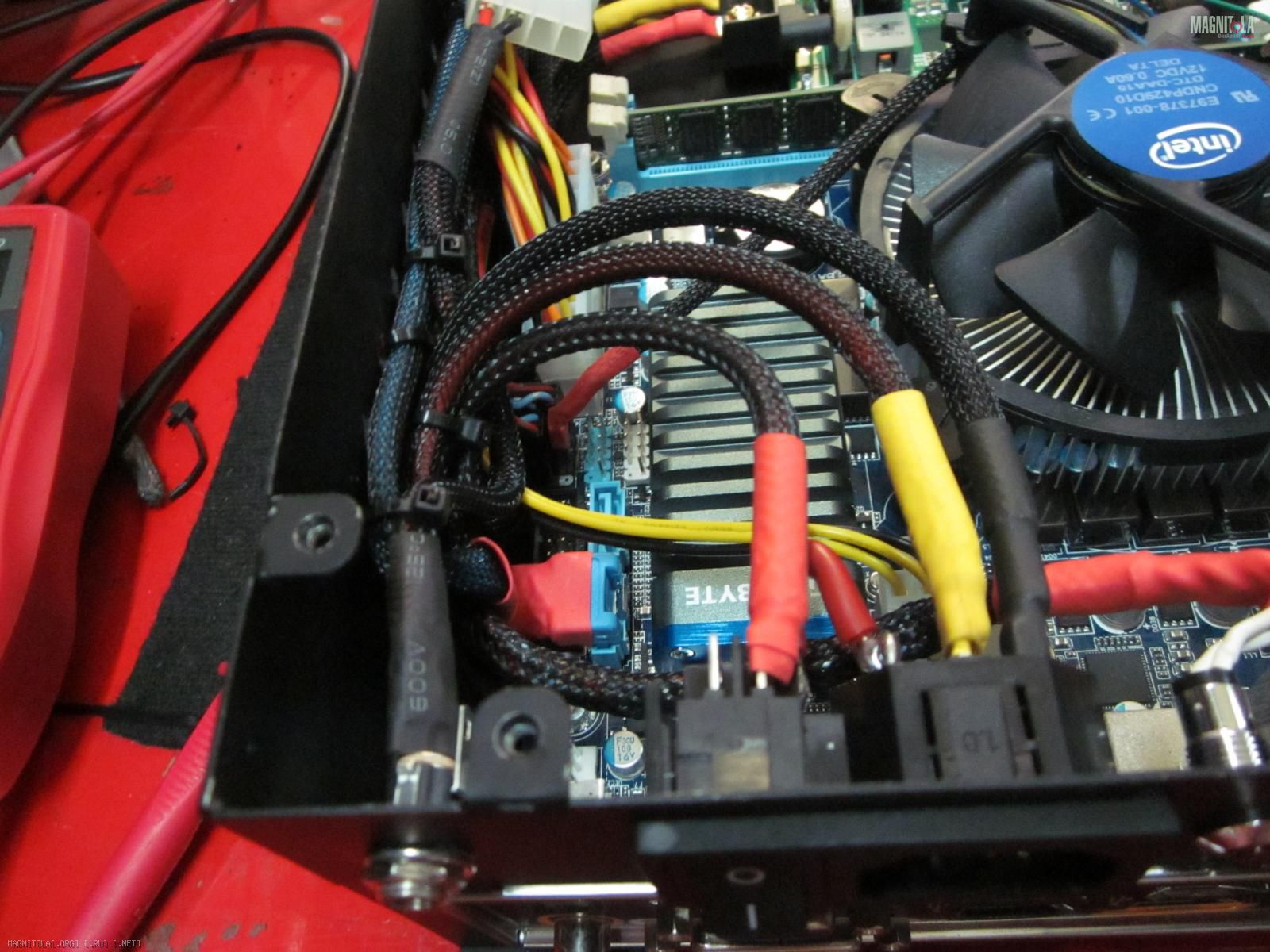 Пару недель назад заказал себе корпус для CarPC. Делался он из уже готового макета с добавлением пары моих деталей - разъем для подключения питания как в БП стационарных компов, и jack-разъем для подключения питания монитора. Недавно я его забрал и уже напичкал своими комплектующими (можно, конечно, добавить еще один HDD, пару кулеров и подсветочку, но чуть позже). Все что мог, упаковал в "змею", ну и закрепил при помощи стяжек к корпусу. От разъема питания к БП идут провода сечением 4кв.мм. На разъем все провода припаяны, с другой стороны - клеммы-вилки и так же пропаяны.
