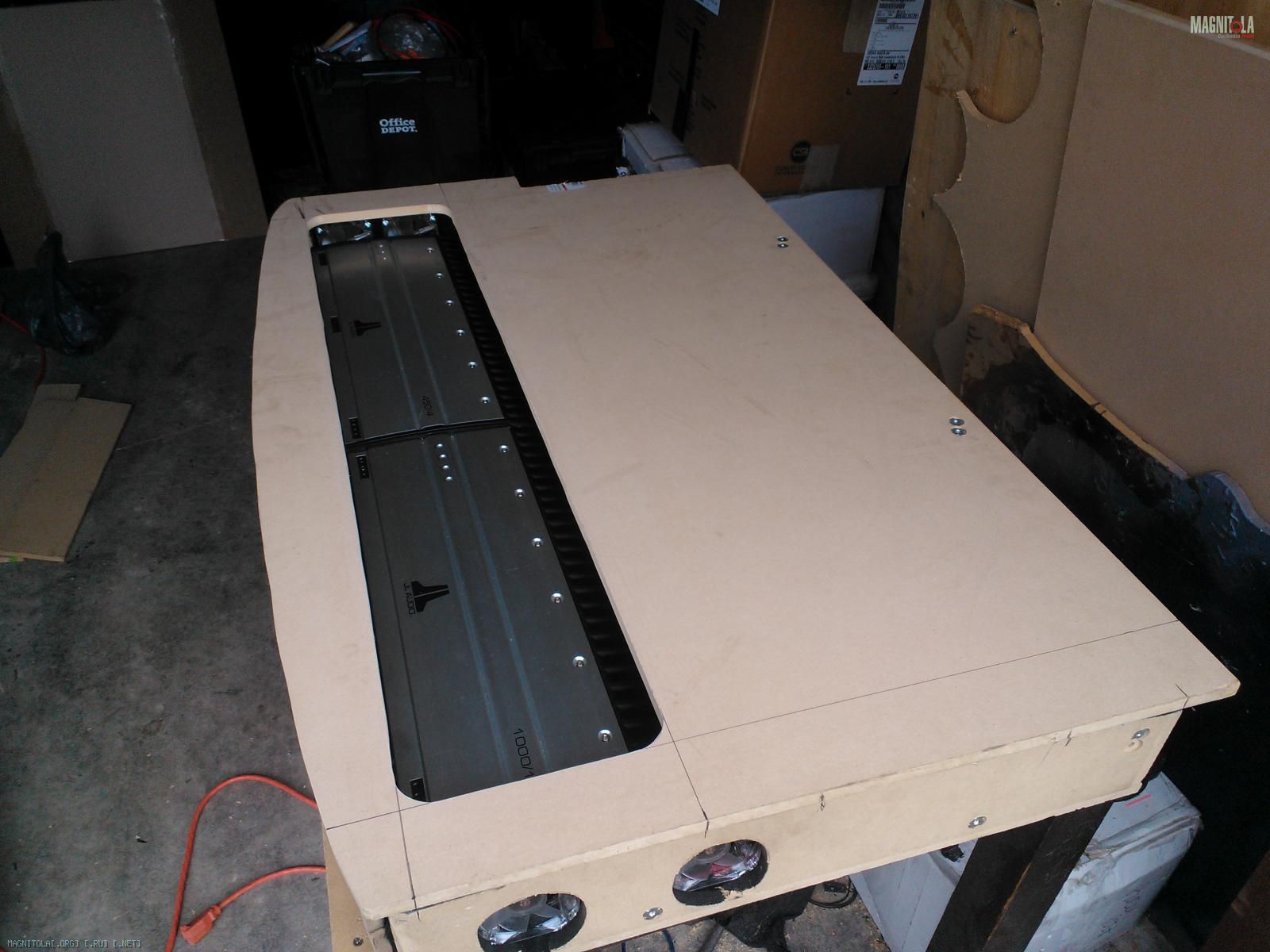 Нашел немного времени на ящик,покрасил внутри,поставил все железо и закрепил межблоки на передней стенке фальшпола.