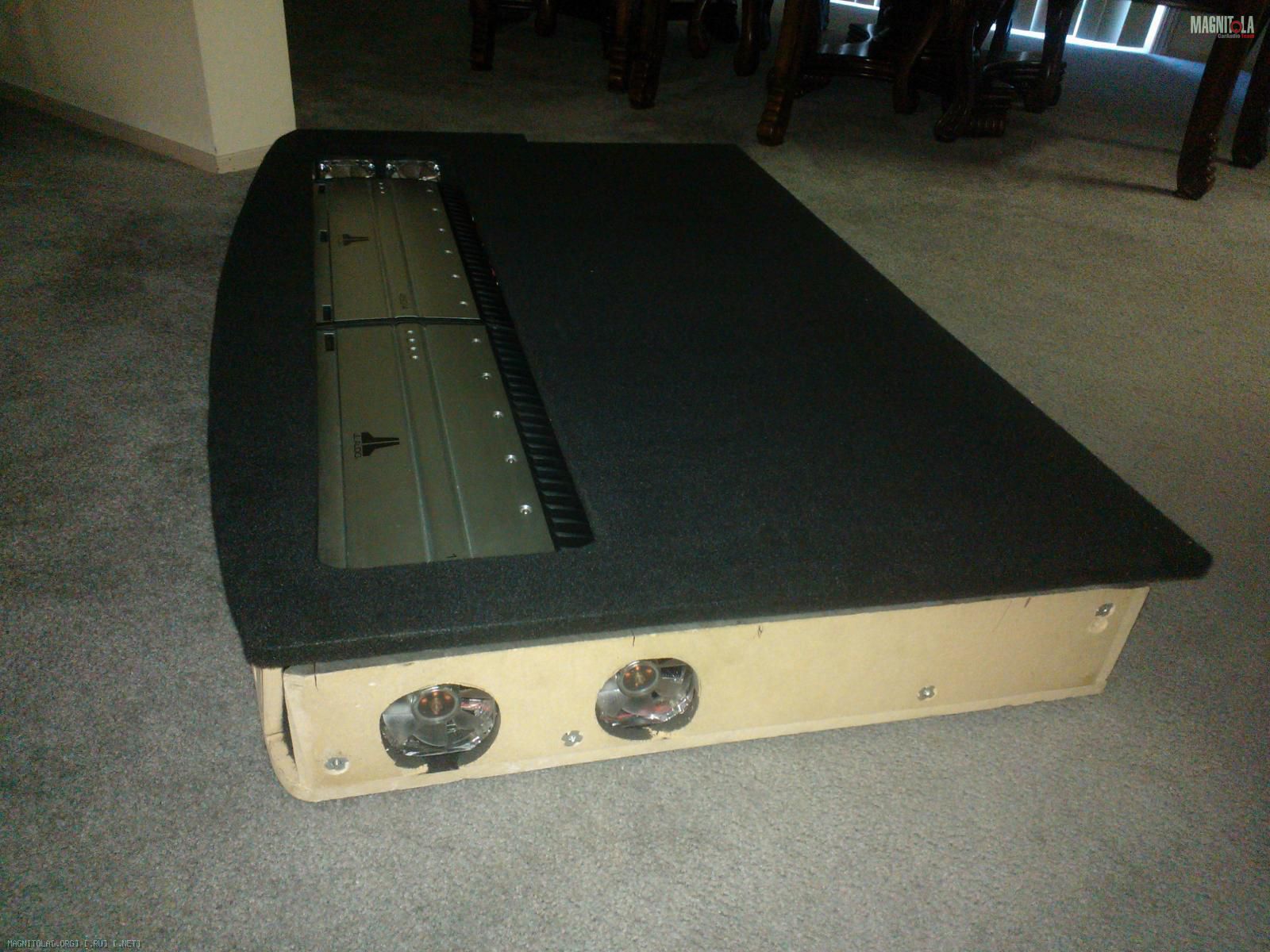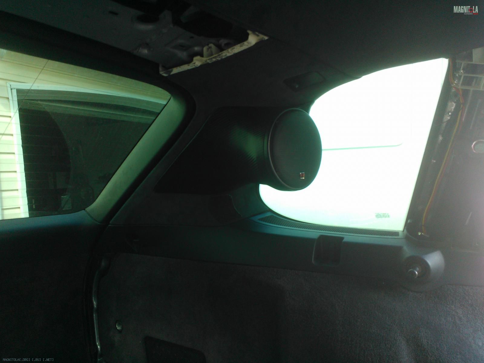 СЧ и Центральный канал врезал самым простым и нехитрым образом,подиумы на сурраунд заклеил карбоном и посадил на заклепки,пока покатаюсь так а потом перетяну нормальным материалом потому что имитация под карбон смотриться Гауно.