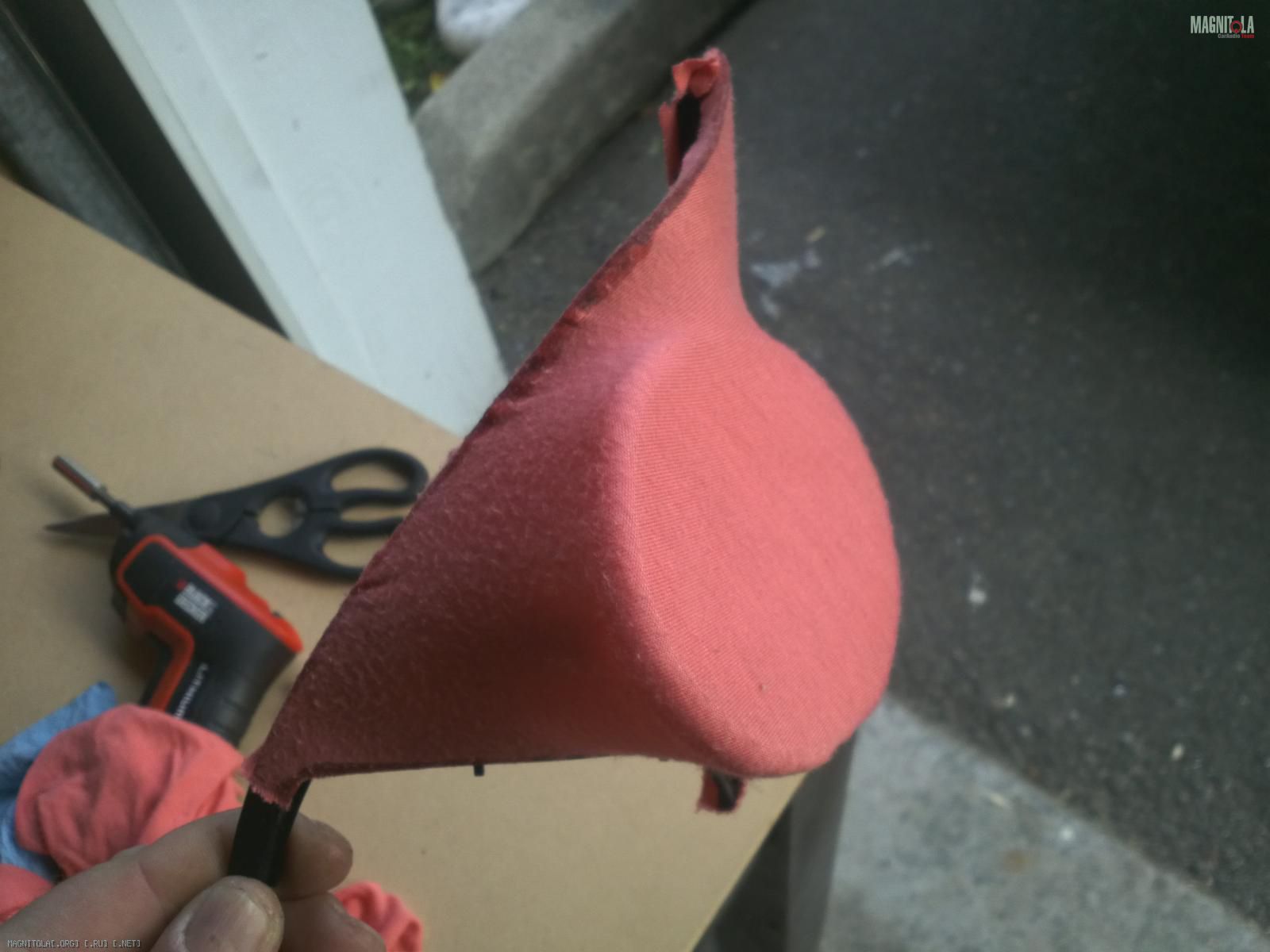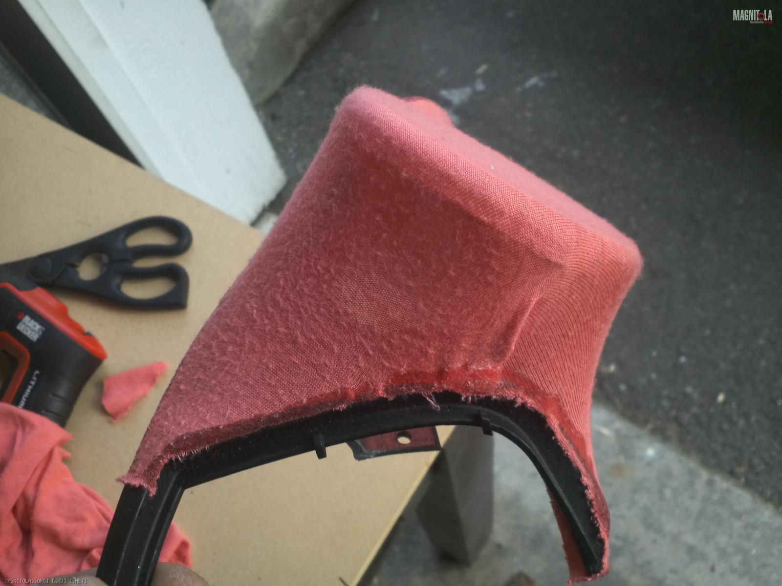 когда обтягивал по краям накапал суперклей,10 секунд и тряпка приклеиваеться мертво к пластмассе,