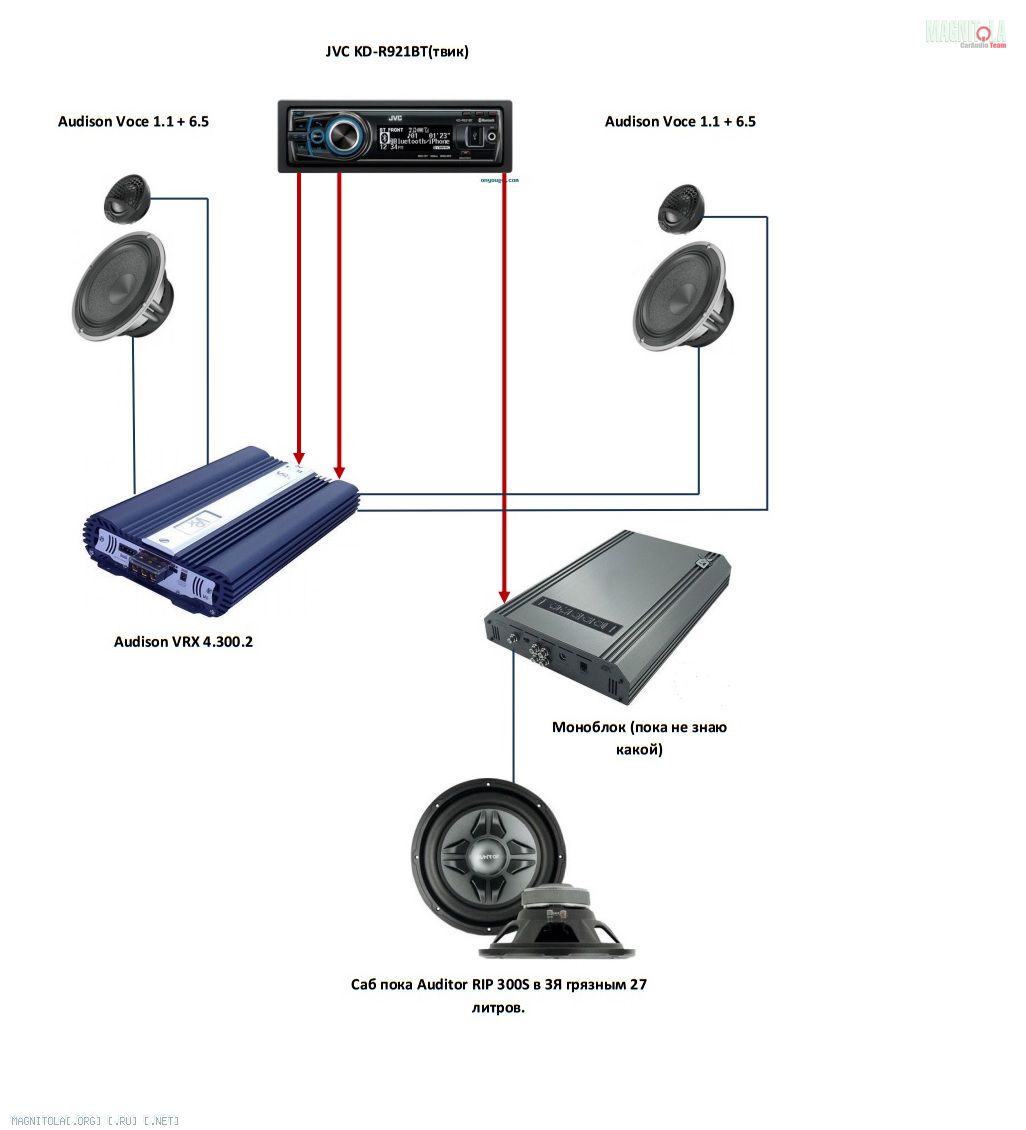 Решил применить лозунг одного из разделов в действии "Лучше слушать музыку сегодня, чем годами копить деньги (компоненты?) и ездить в тишине." Система видится такой, ГУ JVC 921, фронт Audison Voce AV K6 поканально, фильтрами VRX 4.300, (см рисунок ниже) моноблок подберу, после сборки системы (из имеющихся), саб Auditor RIP 300S в ЗЯ (надо туда синтепона напихать), межблоки DAXX R88, R55, Connection BT2 и нашел такой интересный межблок - Supra RCA-665, выглядит солидно, посмотрим что за шнурок. Подключены усилители будут силой 0Ga из аккумулятора в багажник, там через делитель питания Art Sound MB12 4ga. Минус 4Ga из усилителей к кузову, минус от аккумулятора к кузову будет конечно 0ga. Акустические пока не выбрал, нашел Premier недорого и вроде медные, посмотрю еще в магазинах.