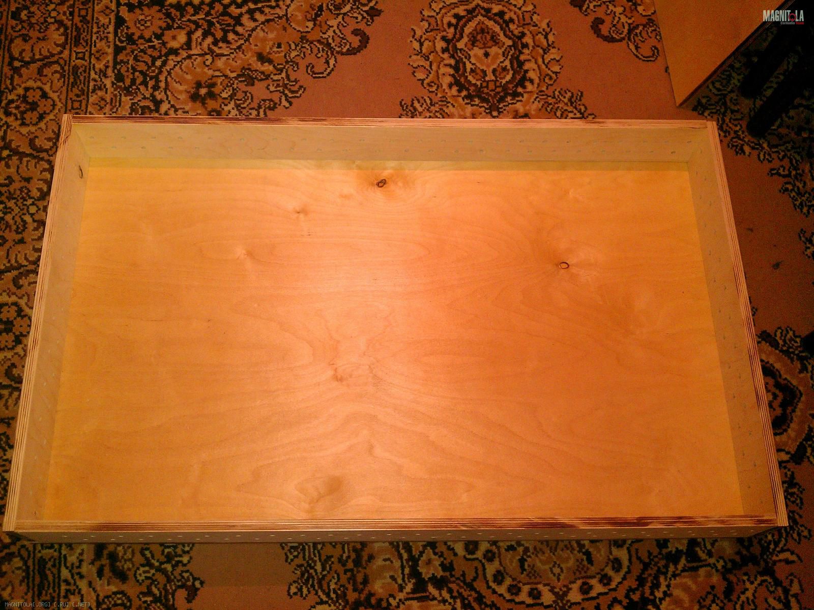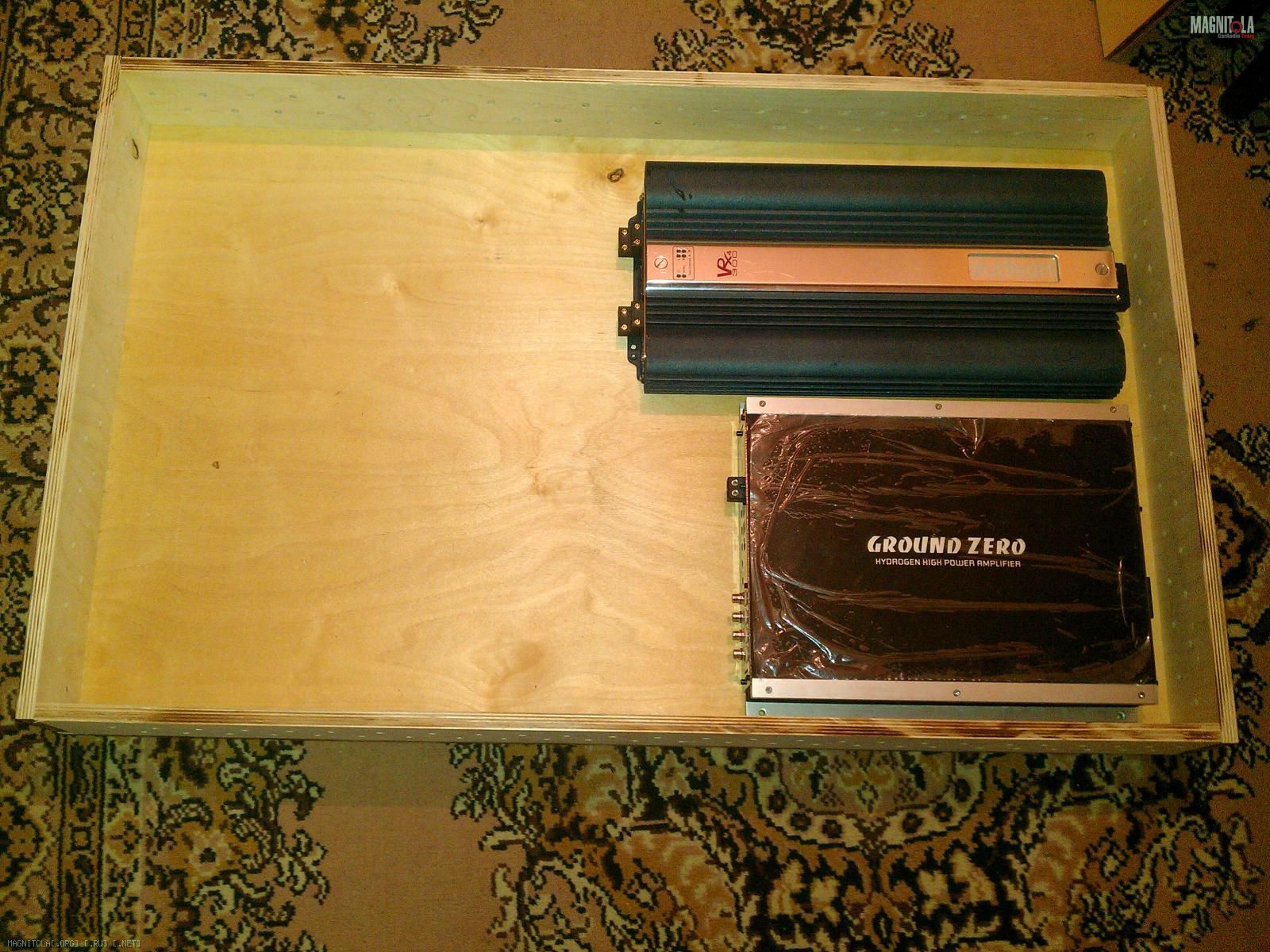 Потихоньку полегоньку собираю все в целое, забрал короб под усилители, конечно не фэньшуйный из металла и оргстекла, ну я ездить на соревнования не собираюсь, а в багажнике реально иногда мешок картошки перевозится. Сделано из 15мм фанеры, немного перестарался с размерами (103смх64см высота внутренняя 10см), буду переделывать. Во первых высоченный-13см, думаю 1,5 см можно срезать безболезненно (усилители около 6,5 см, пусть поднимем их на 0,5см, и еще 1,5 см будет сверху. Во вторых уменьшить и длину и ширину, конечно можно оставить, но зачем мне такой большой короб (синий это VRX 4.300), трехполоску я строить в этом авто точно не буду, ну максимум когда-нибудь процессор поставлю, так там еще столько места осталось, надо покумекать как усилители разместить и проводку подводить (дырочки в боковинах будут увеличены конечно, может надо пропеллер 80х80мм компьютерный поставить в боковую стенку?). Верхнюю крышку на петли рояльные, конечно запаску доставать то еще приключение будет, ну надеюсь она мне не часто нужна будет (за 2,5 года один раз понадобилась). Может надо было из 12мм фанеры запилить... Ну да ладно, так точно не сломается под мешком картошки :)