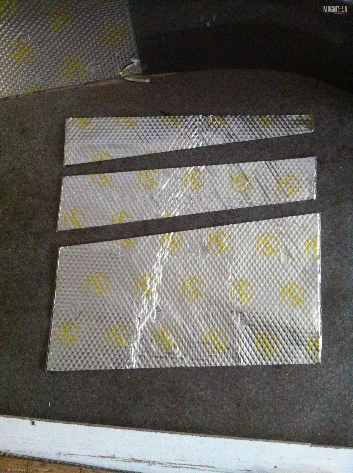 Пока не клеил, материала нет. Я хочу передние двери поклеить материалами Шумофф, М3 на внутренний металл, Проф 4Ф на щит перегородку и комфорт 6.