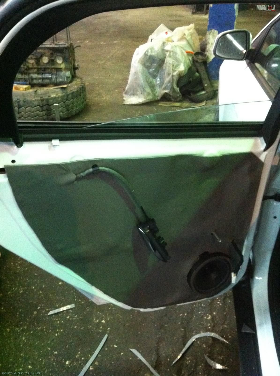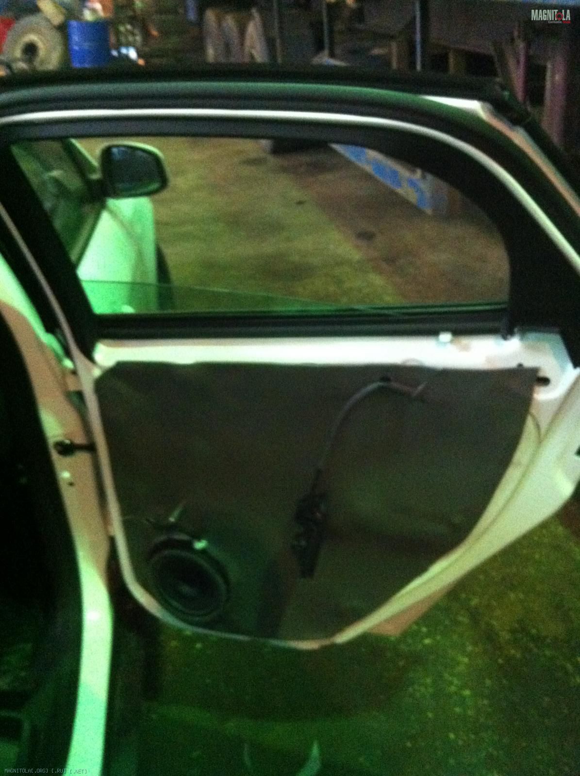 Двери на простукивание стали глухие, притом что покрыто процентов 70-80 площади. Задние колонки родные (вообще смешные, магнит, как крышка от пятилитровой бутылки из под воды) на максимальной громкости уже не издают хрипы и свисты. Даже не рипят, что удивительно, хотя раньше играли, как мобильный телефон в банке.