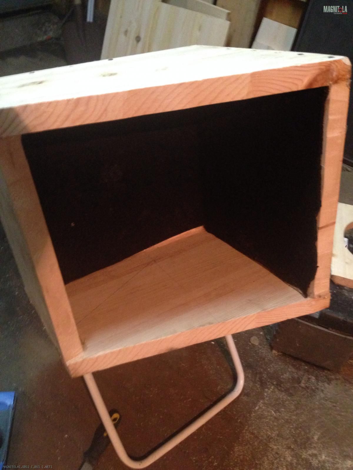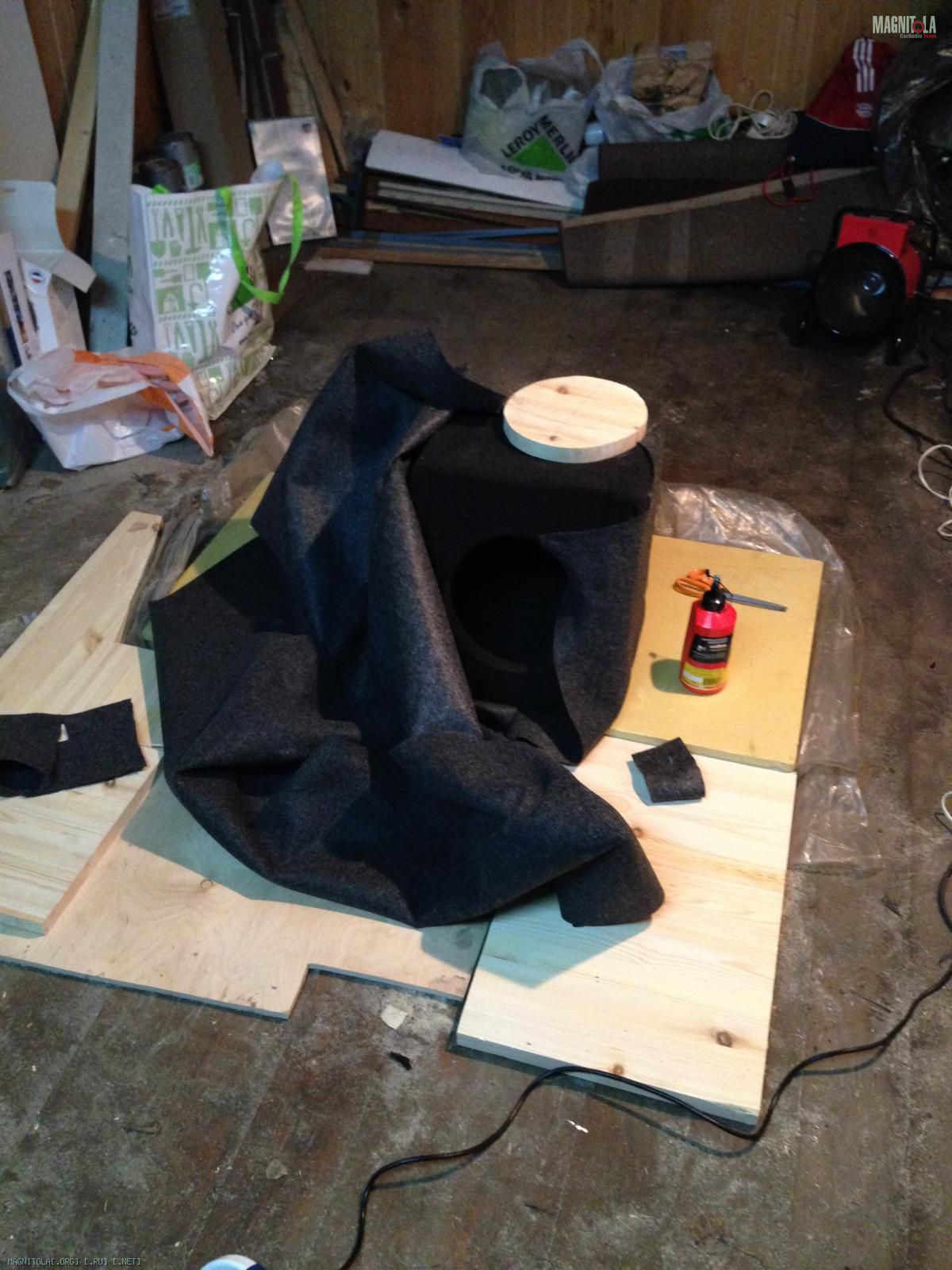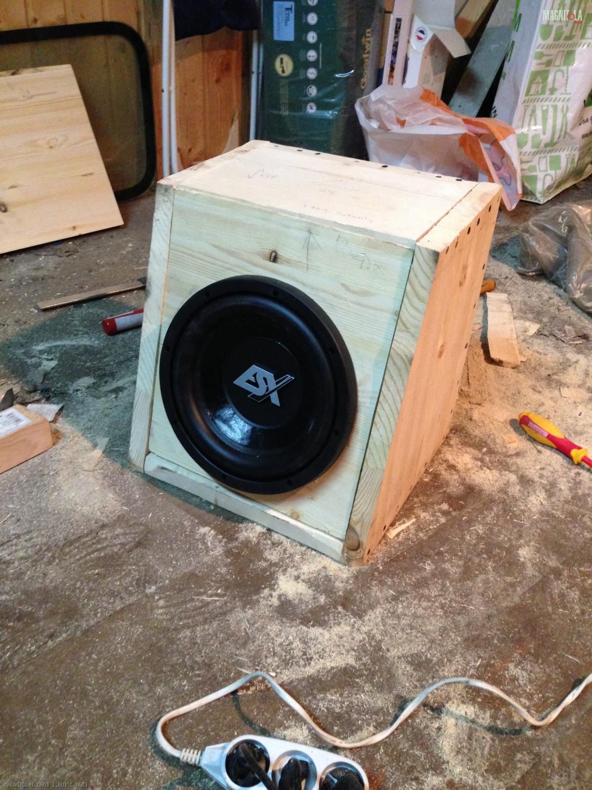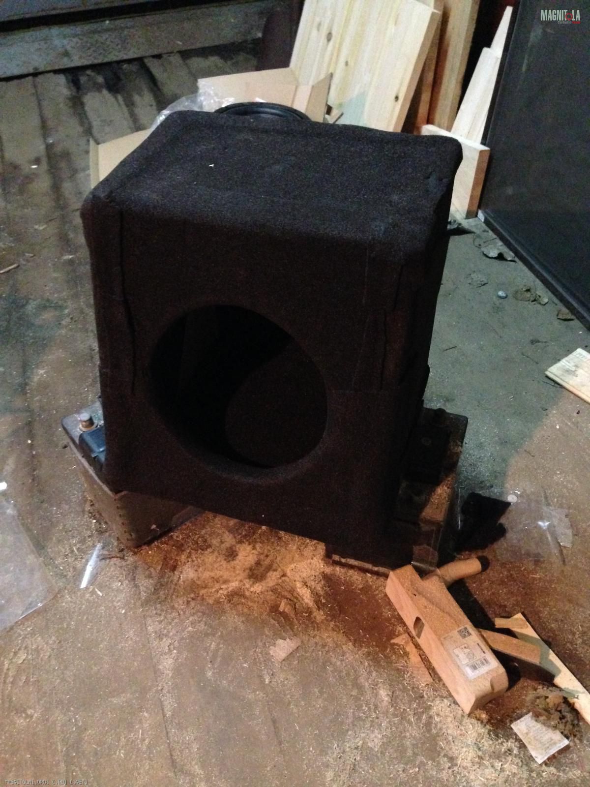 Скажу честно, эстетики никакой, с ДСП или фанерой все было бы по-другому... Правда, ящик был и изнутри, и снаружи завибрен, а до этого промазан всем, чем только можно!! Карпетом обтянуть толком не удалось... Так, для вида... Блин, но он отлично звучит!!!! Клянусь! На быстрых трансах, на психоделиках, даже на хардбасе - саб играет ровно, четко, без опазданий в ритм! )) Вот тебе и на - первый раз! ))