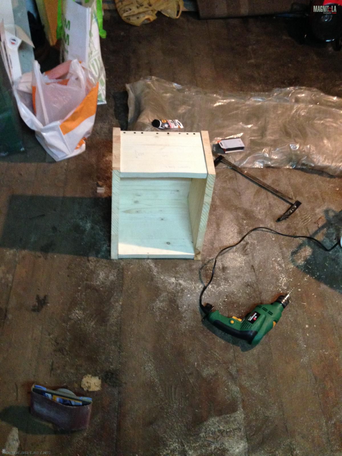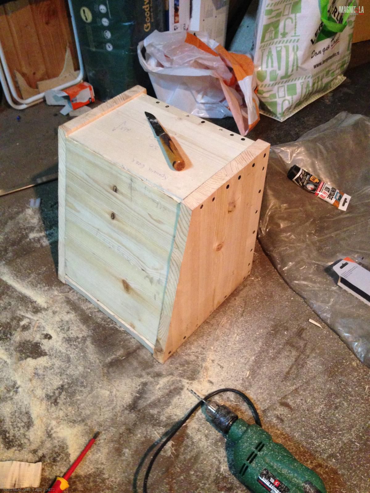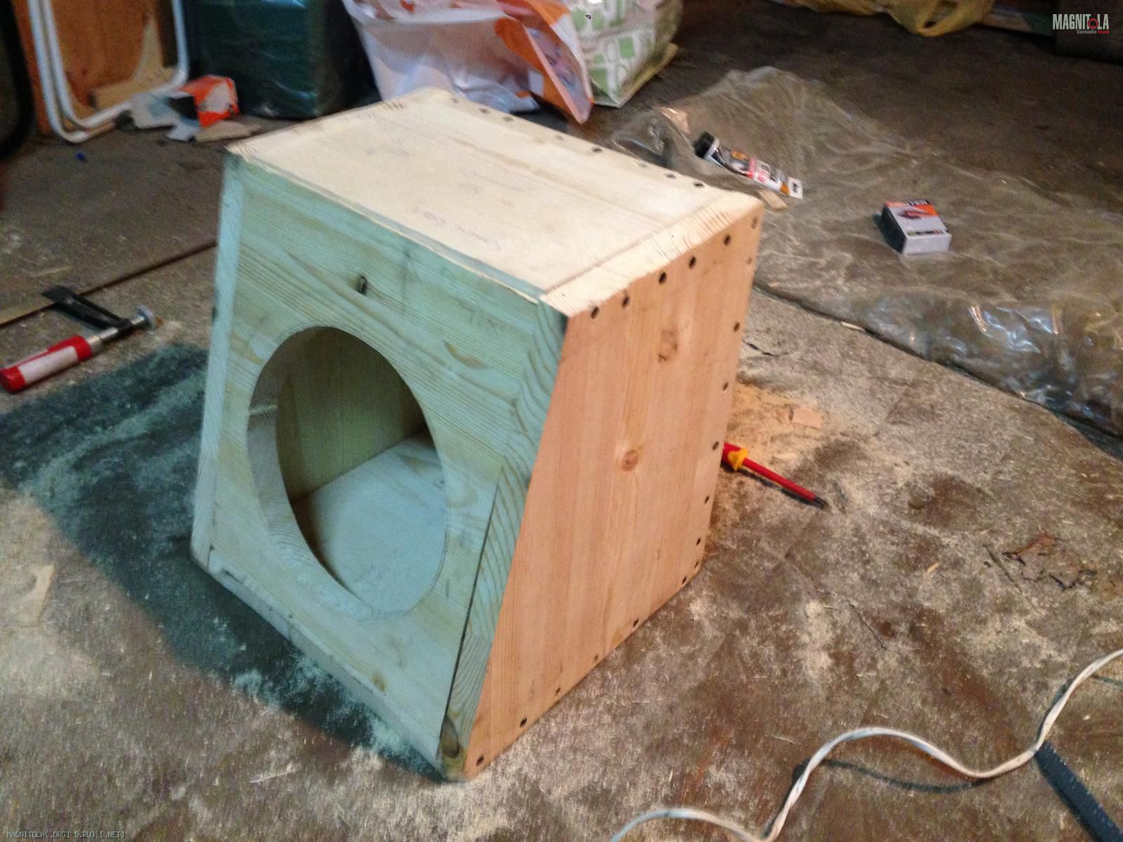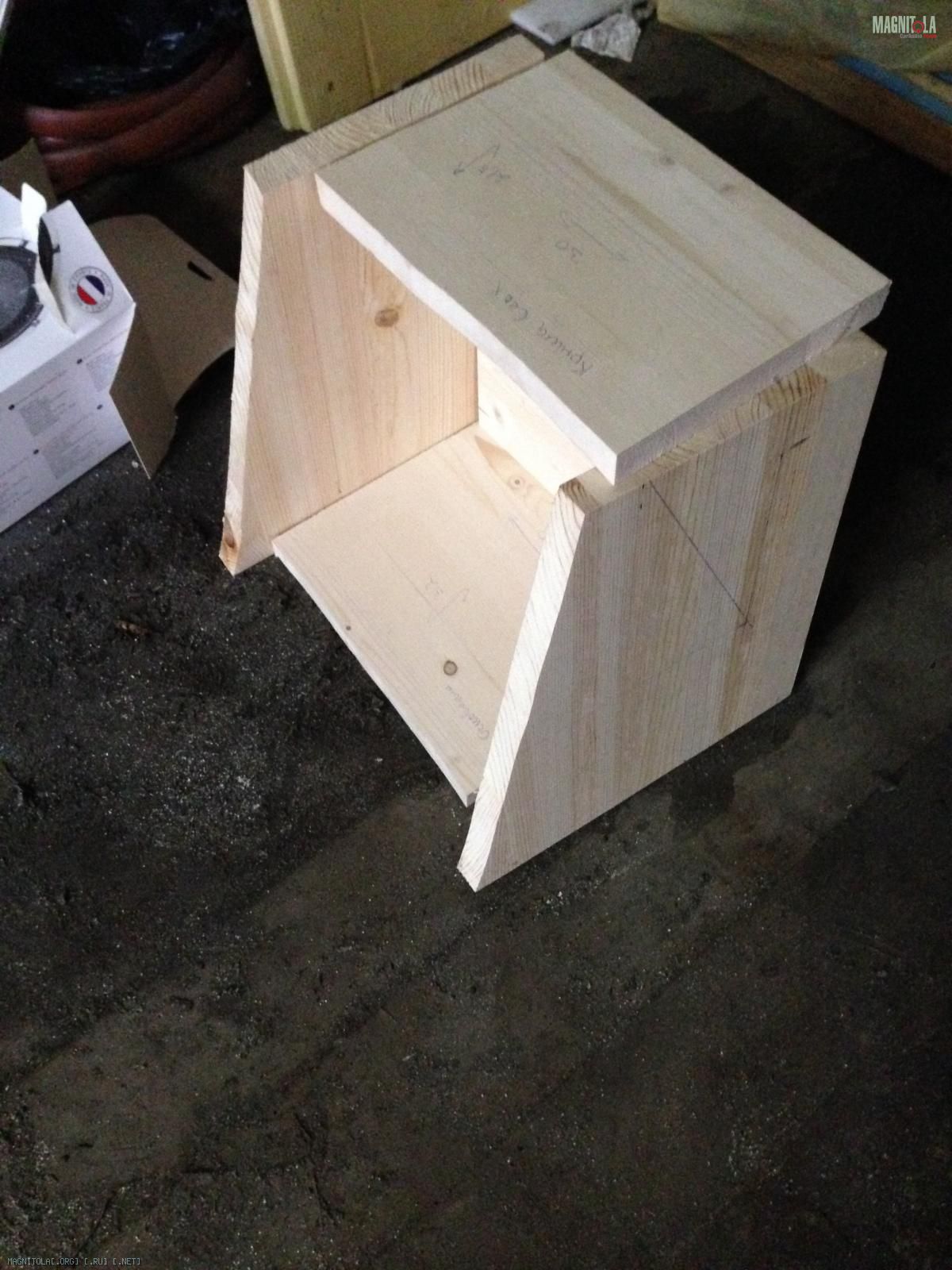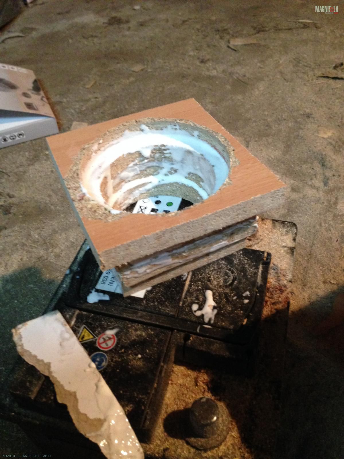 Скажу честно, эстетики никакой, с ДСП или фанерой все было бы по-другому... Правда, ящик был и изнутри, и снаружи завибрен, а до этого промазан всем, чем только можно!! Карпетом обтянуть толком не удалось... Так, для вида... Блин, но он отлично звучит!!!! Клянусь! На быстрых трансах, на психоделиках, даже на хардбасе - саб играет ровно, четко, без опазданий в ритм! )) Вот тебе и на - первый раз! ))