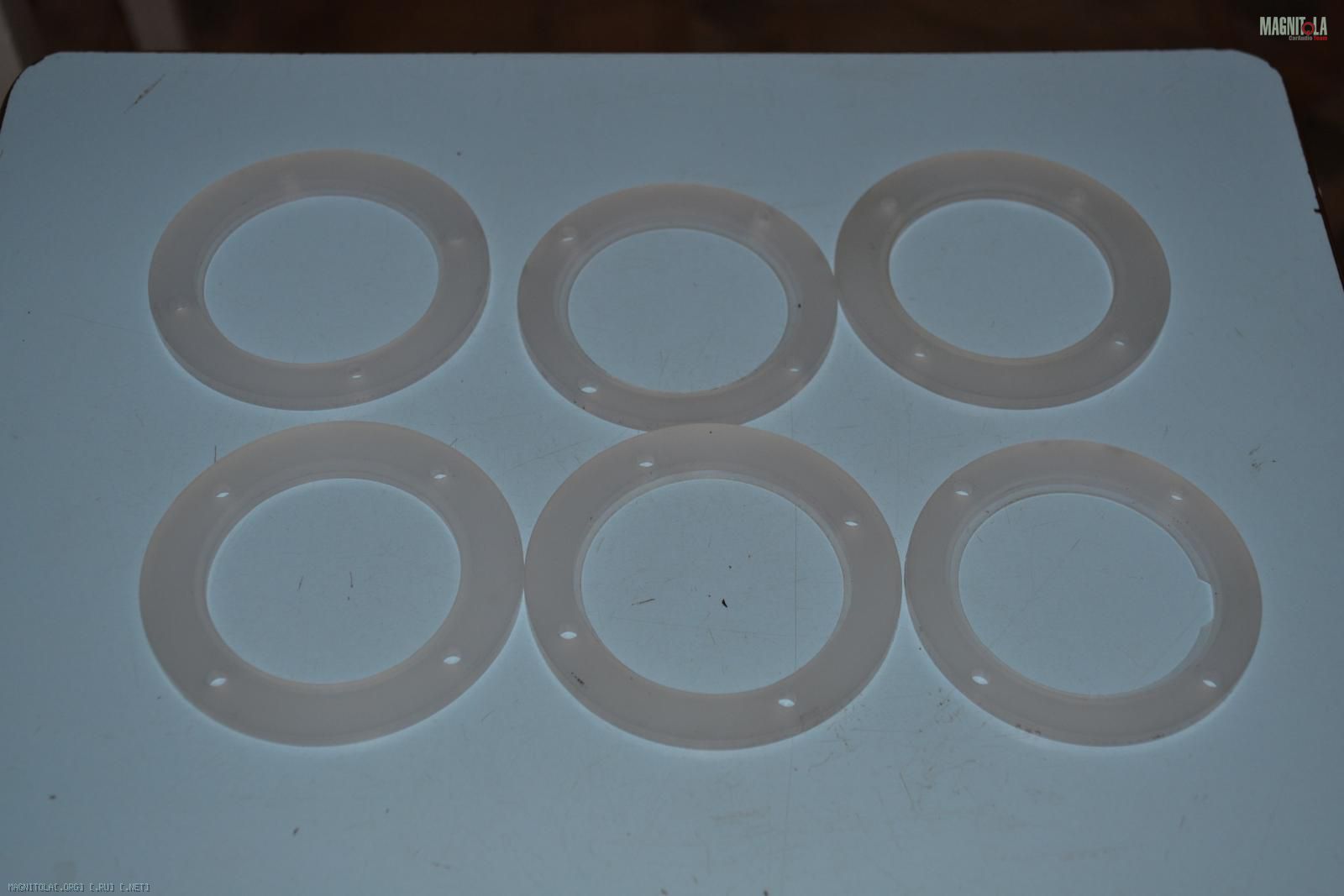 Думал, думал как же зафиксиловать ширики, в которых нет отверстий для крепежа, имея вот такие кольца из акрила.