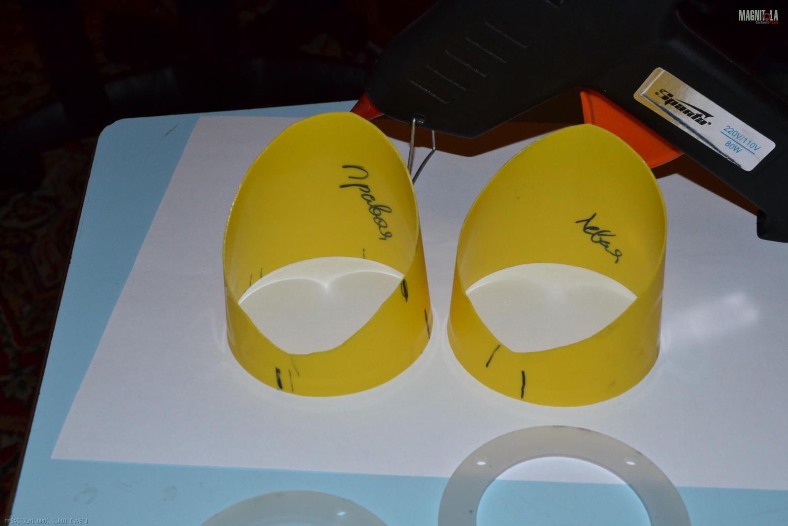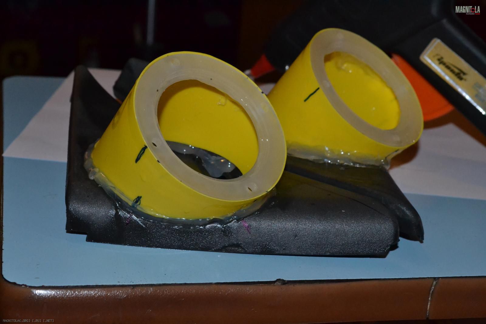 И тут понеслось ))) Просидел в машине около часа, подгонял по месту стаканы. На помощь пришел мой друг - термоклей )) Все пометил маркером и дома уже все мосадил как следует.