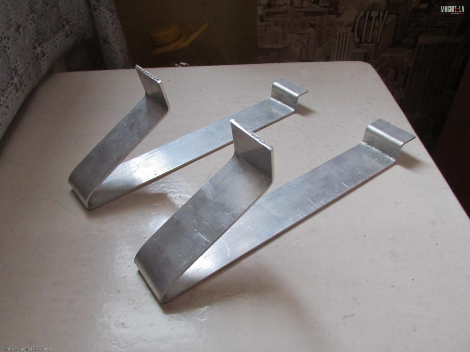 Тут у меня случился небольшой казус. Машина сломалась, поэтому все силы только туда были. Машину вылечил ) Приступил к музыке. Сегодня день посветил установки усилителю. Сделал из аллюминиевой пластины вот такие загогулины =)
