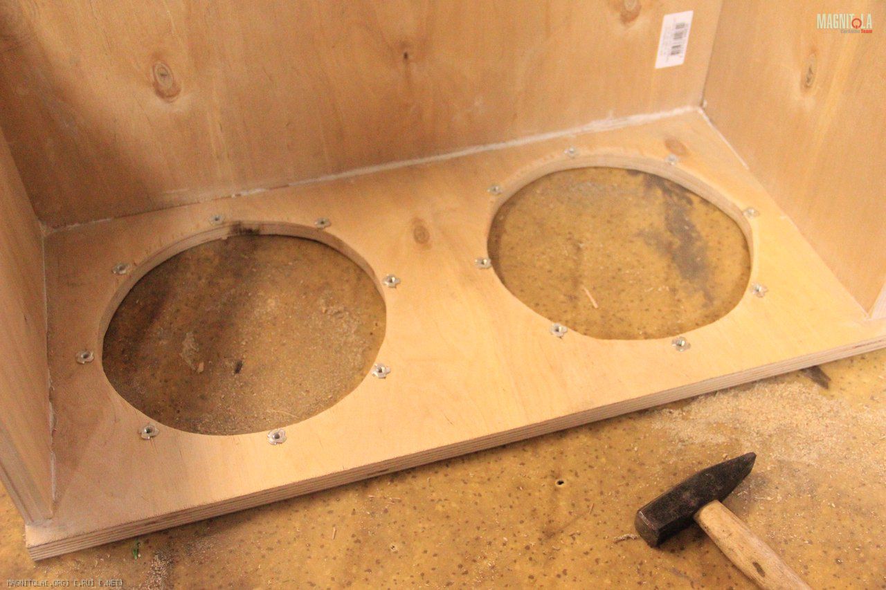 Собираем дальше ящик. Вырезаем отверстия для сабиков.
