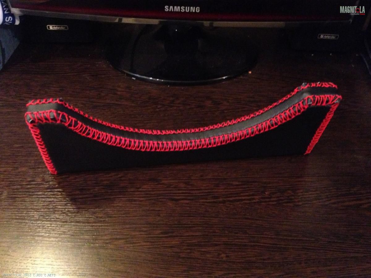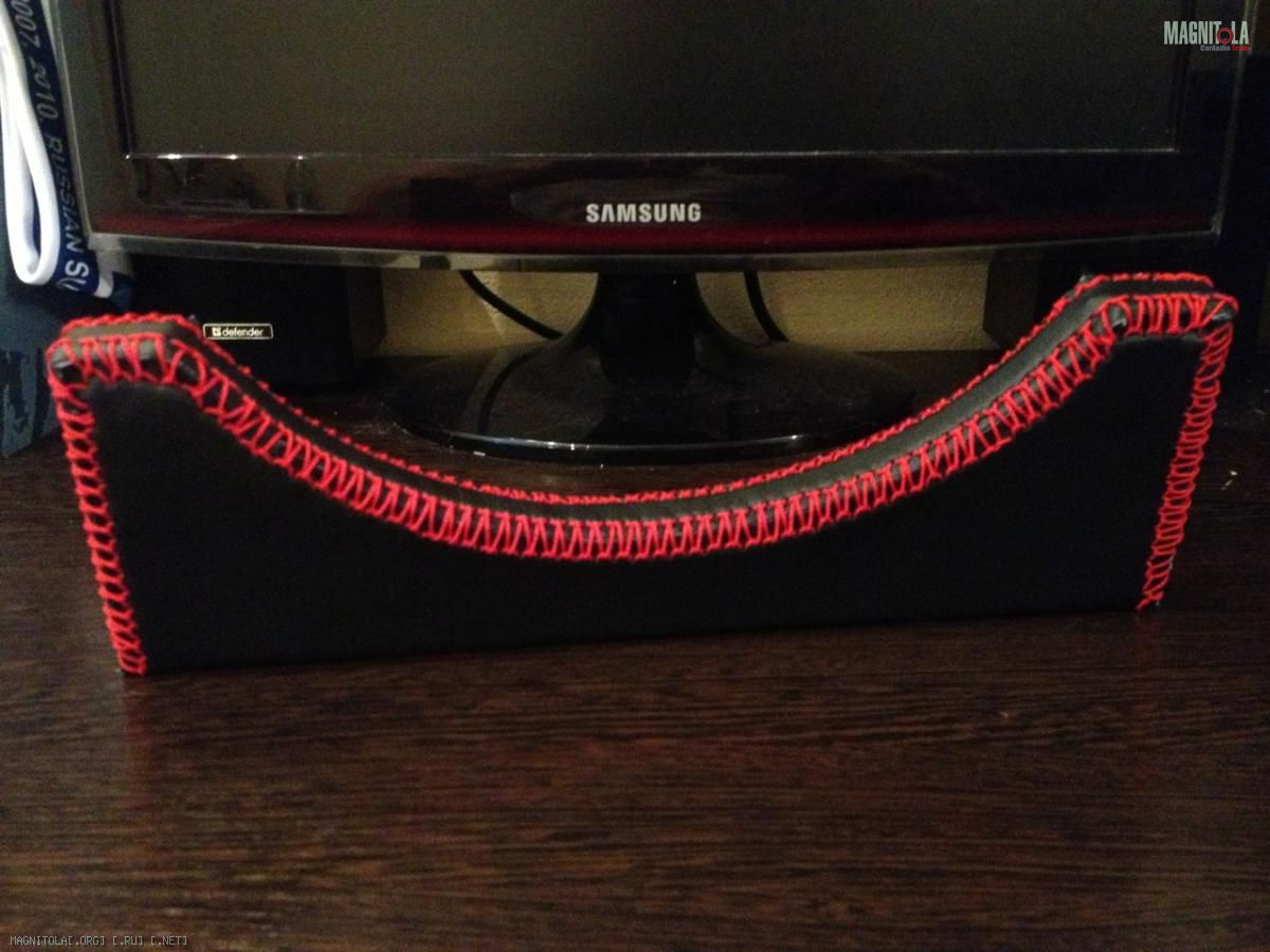 Решил сделать самодельные грили (защиту для динамиков). Сделал из фанеры крепления и обшил их. Использовал эко-кожу и нейлоновую нить. Как-то так ...
