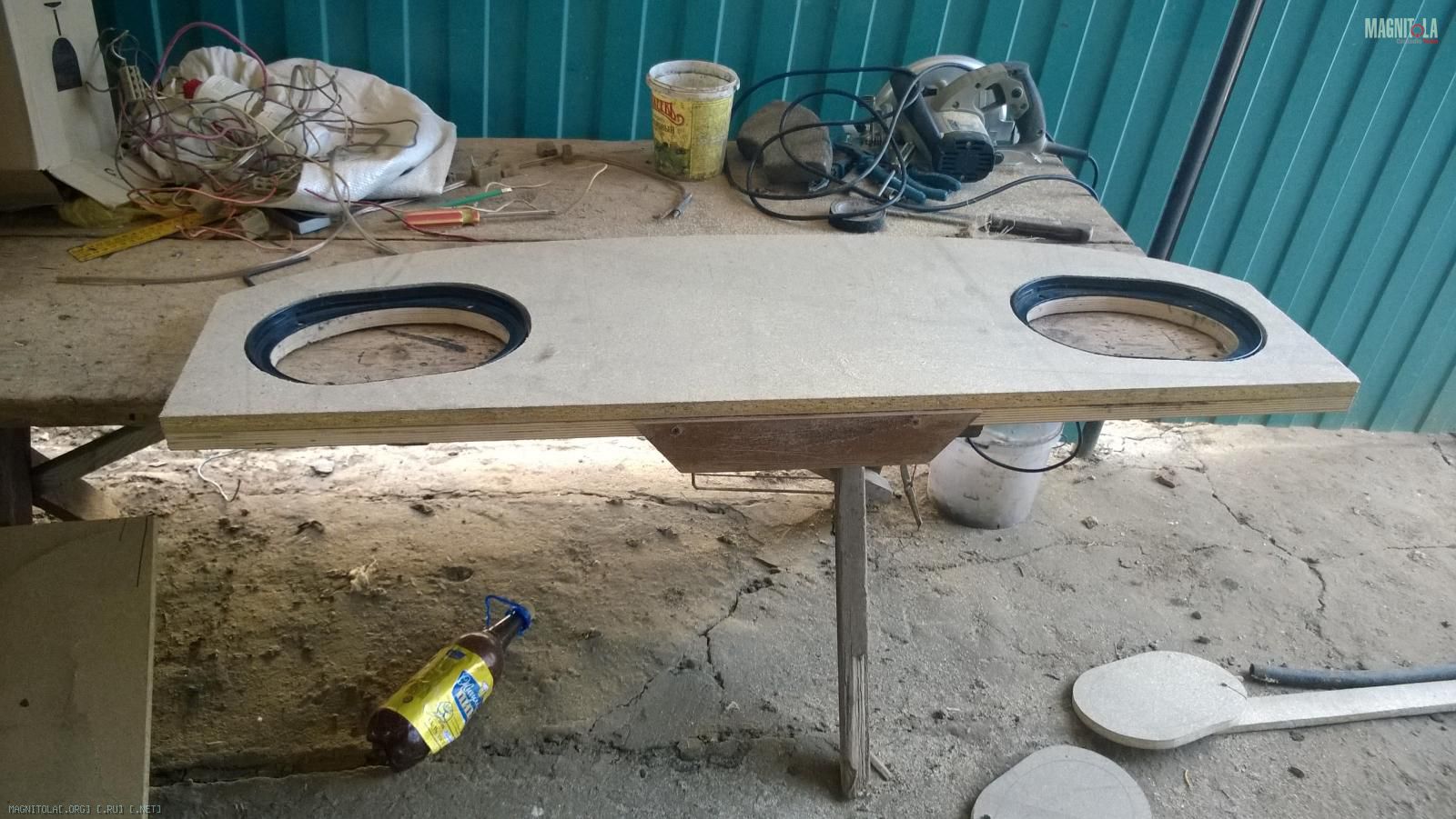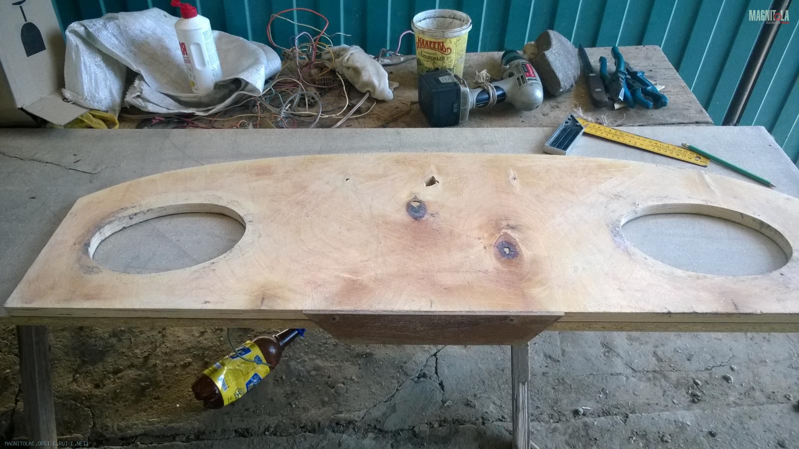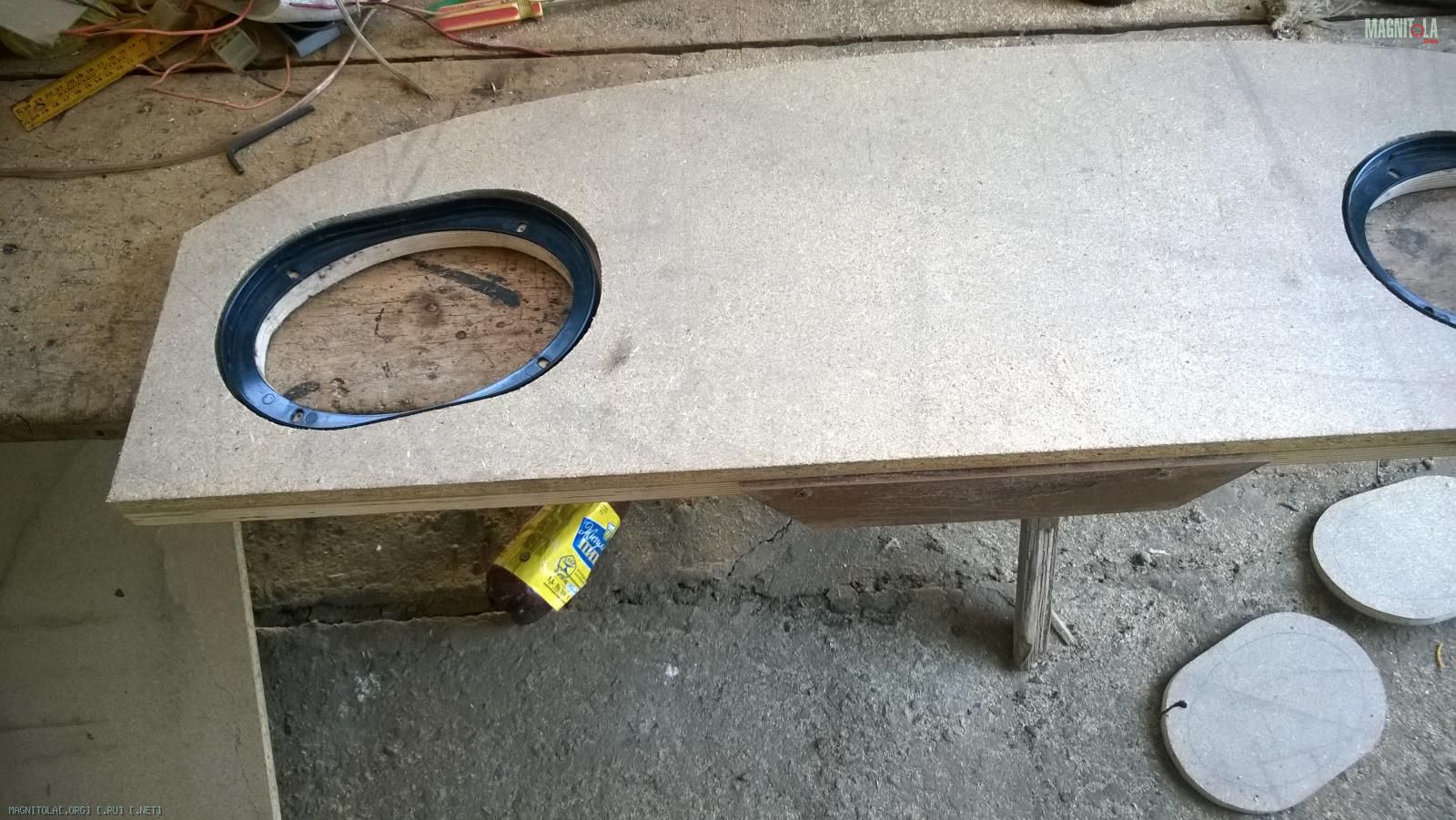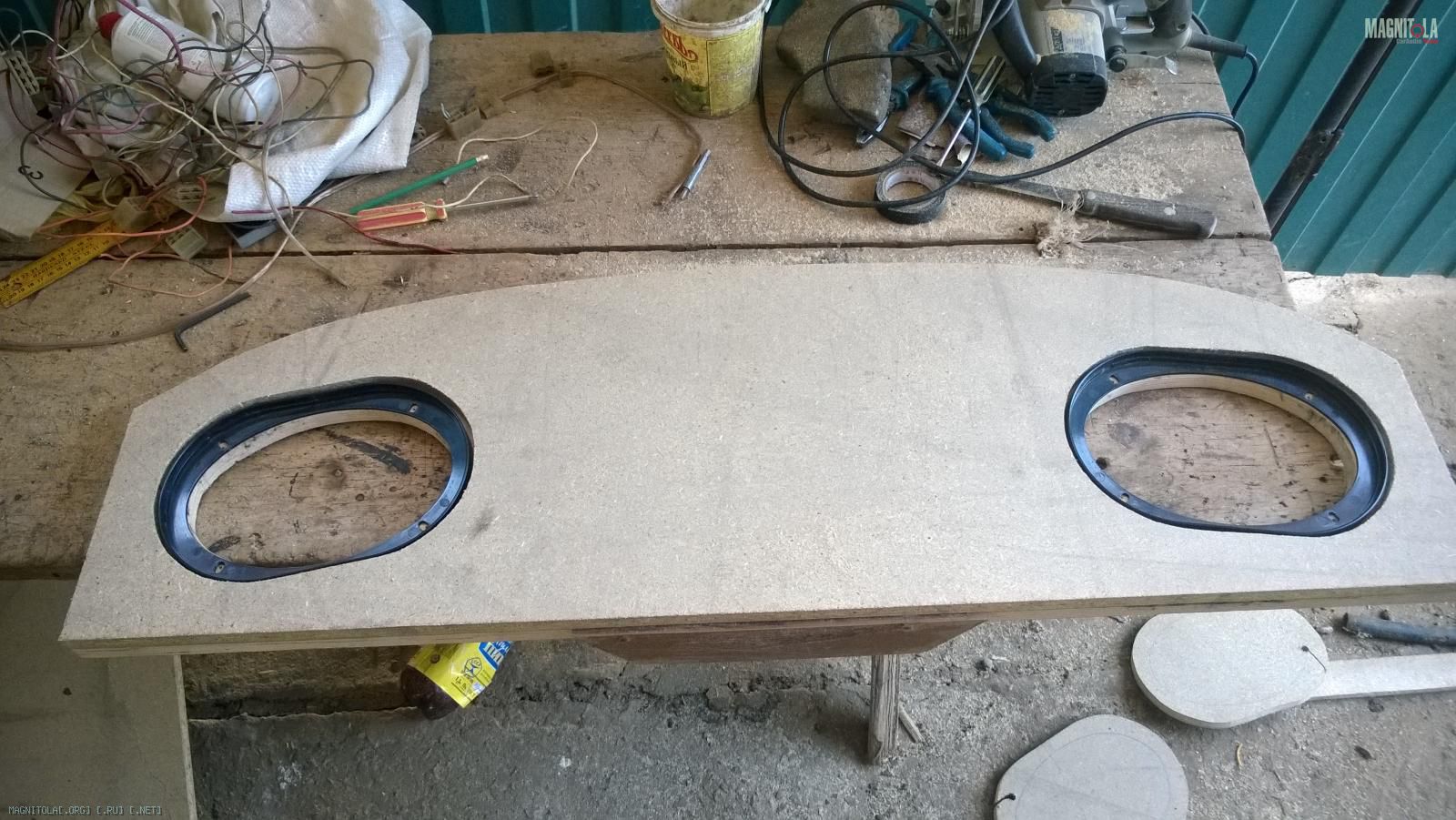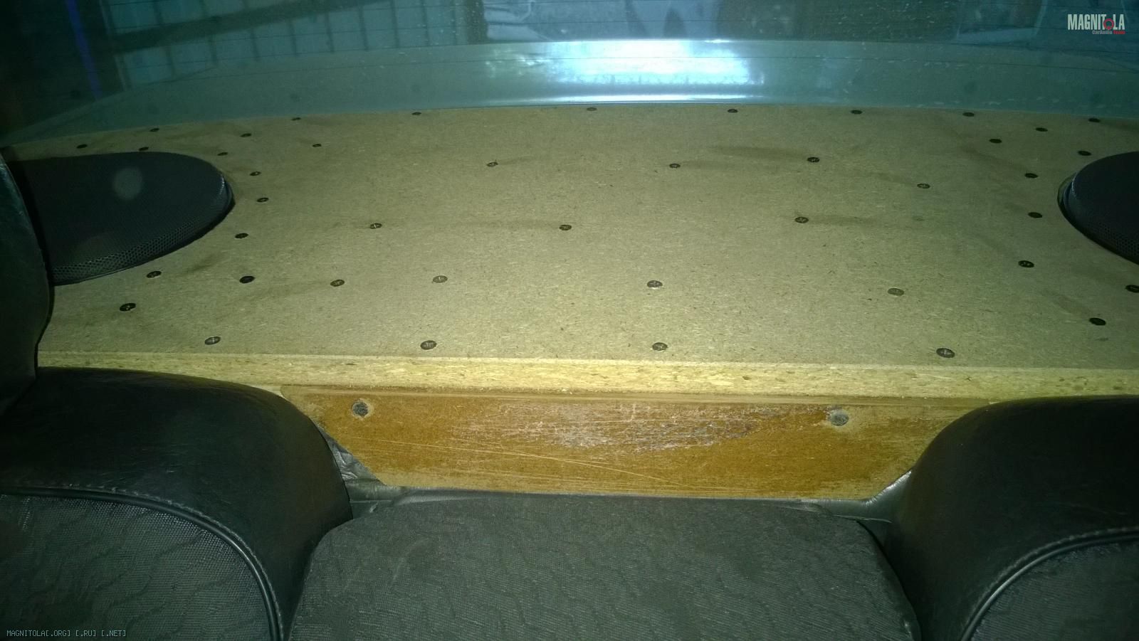 Динамики сразу так хотел разместить. пока скрытый инстал не впечатляет. полку покрыть лаком и обтянуть кожзамом а по центру сделать декоративную вставку у кого есть соображения выкладываем!!!!