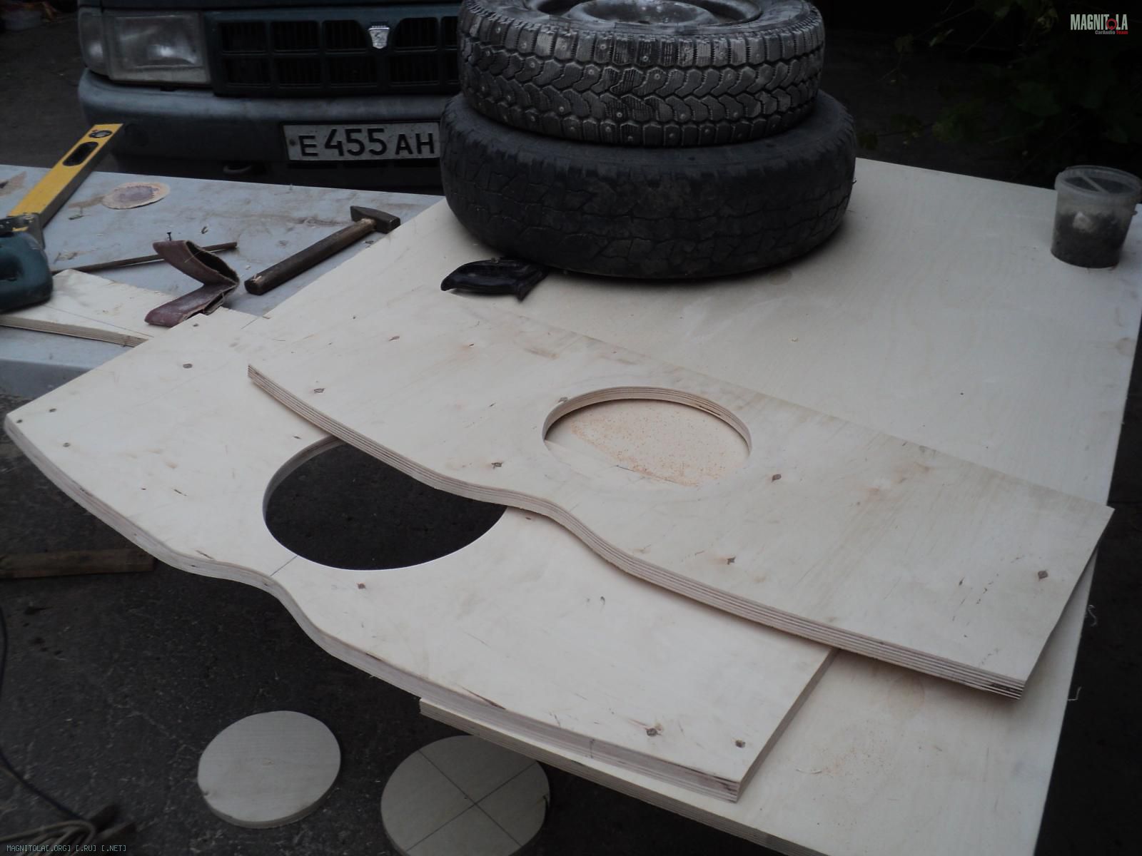 Для полки саба купил лист фанеры 18мм, вырезал два куска по форме полки