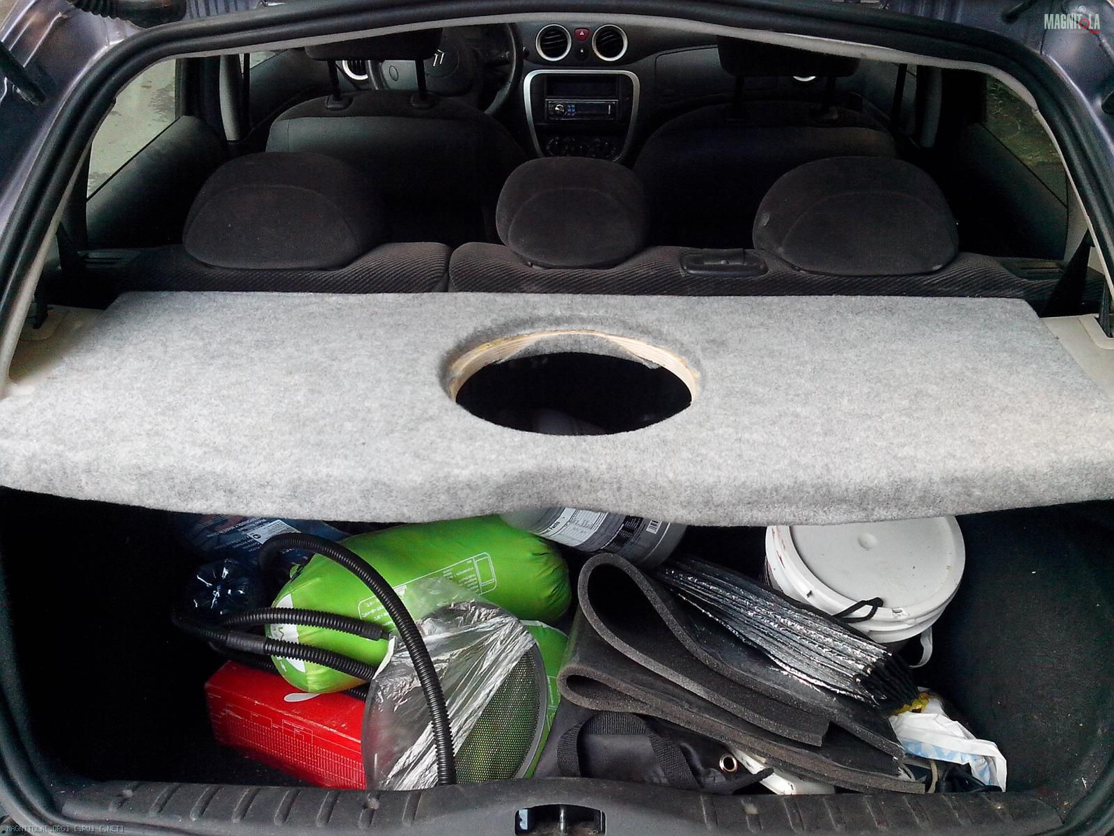 Под пассажирским сиденьем раположились уси на фронт, под водительским на саб.